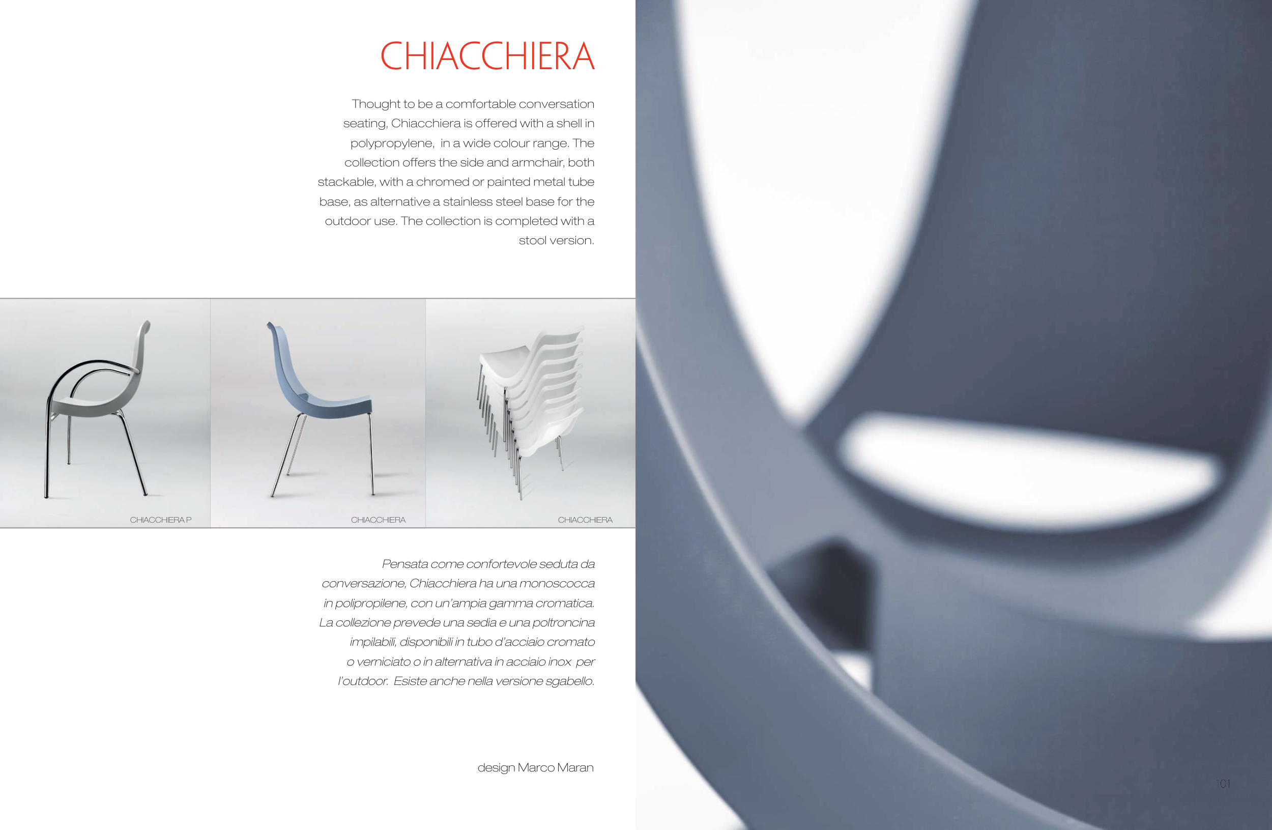 seating, Chiacchiera is offered with a shell in