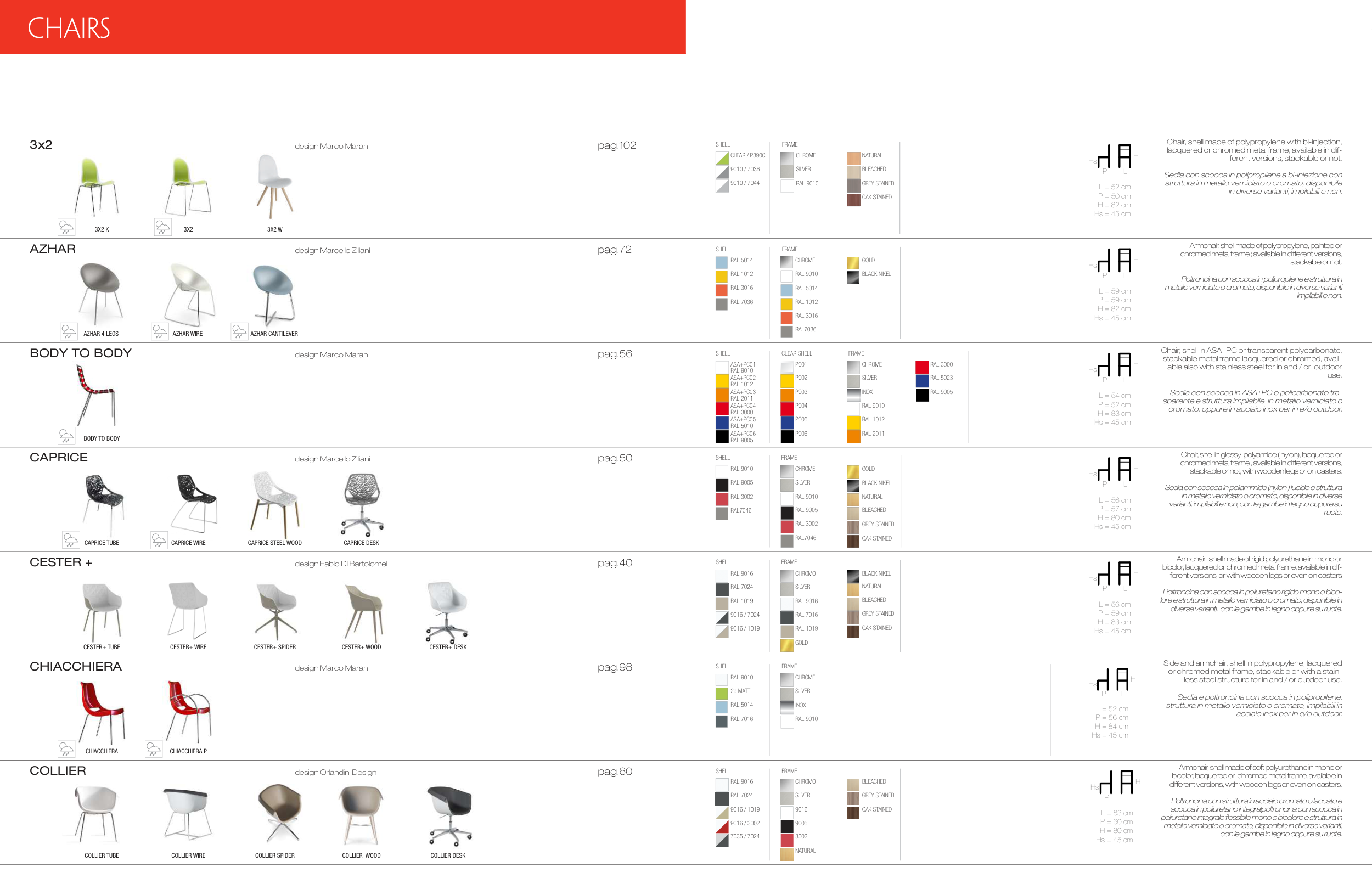 varianti, impilabili e non, con le gambe in legno oppure su