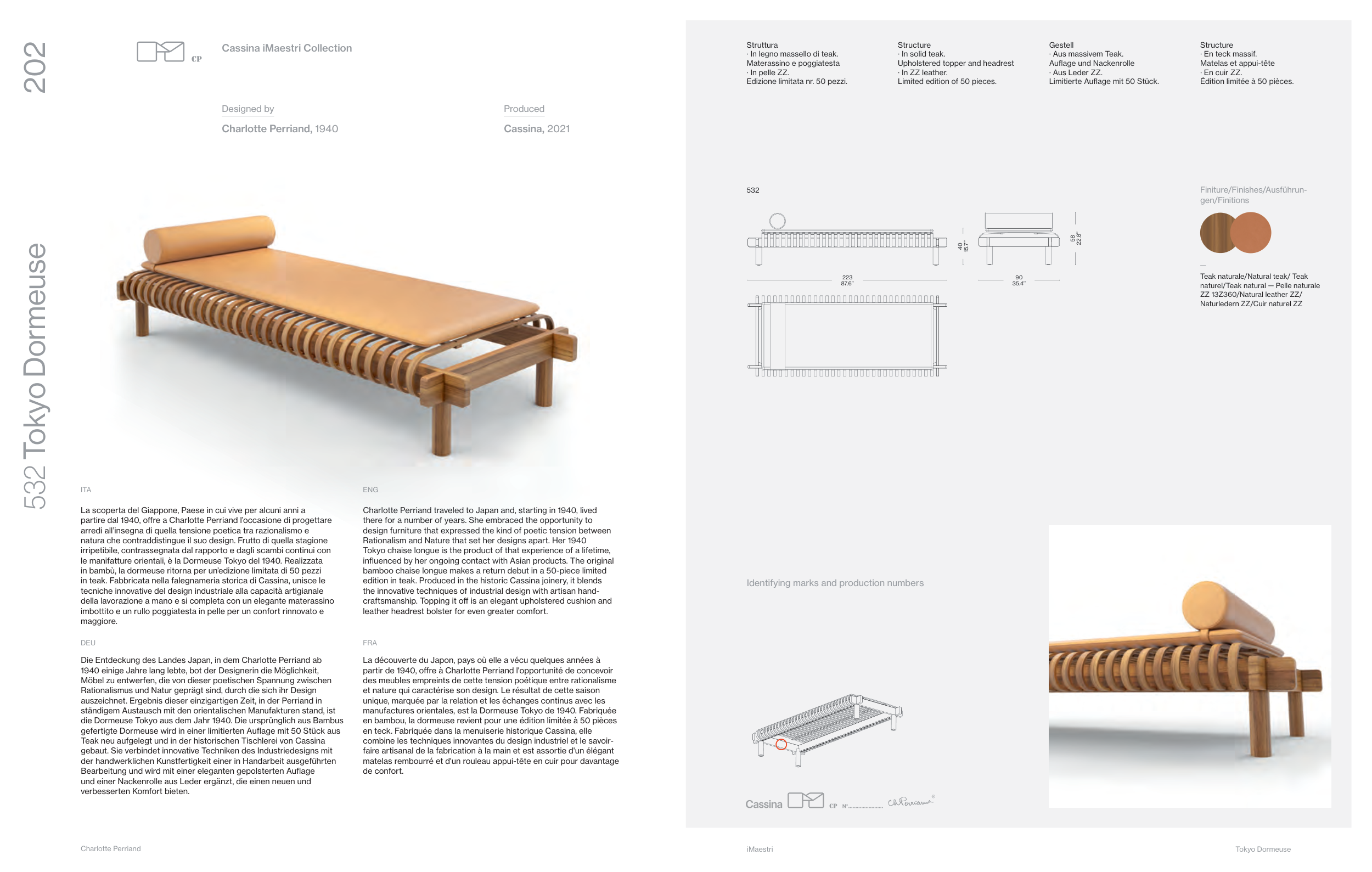 edition in teak. Produced in the historic Cassina joinery, it blends