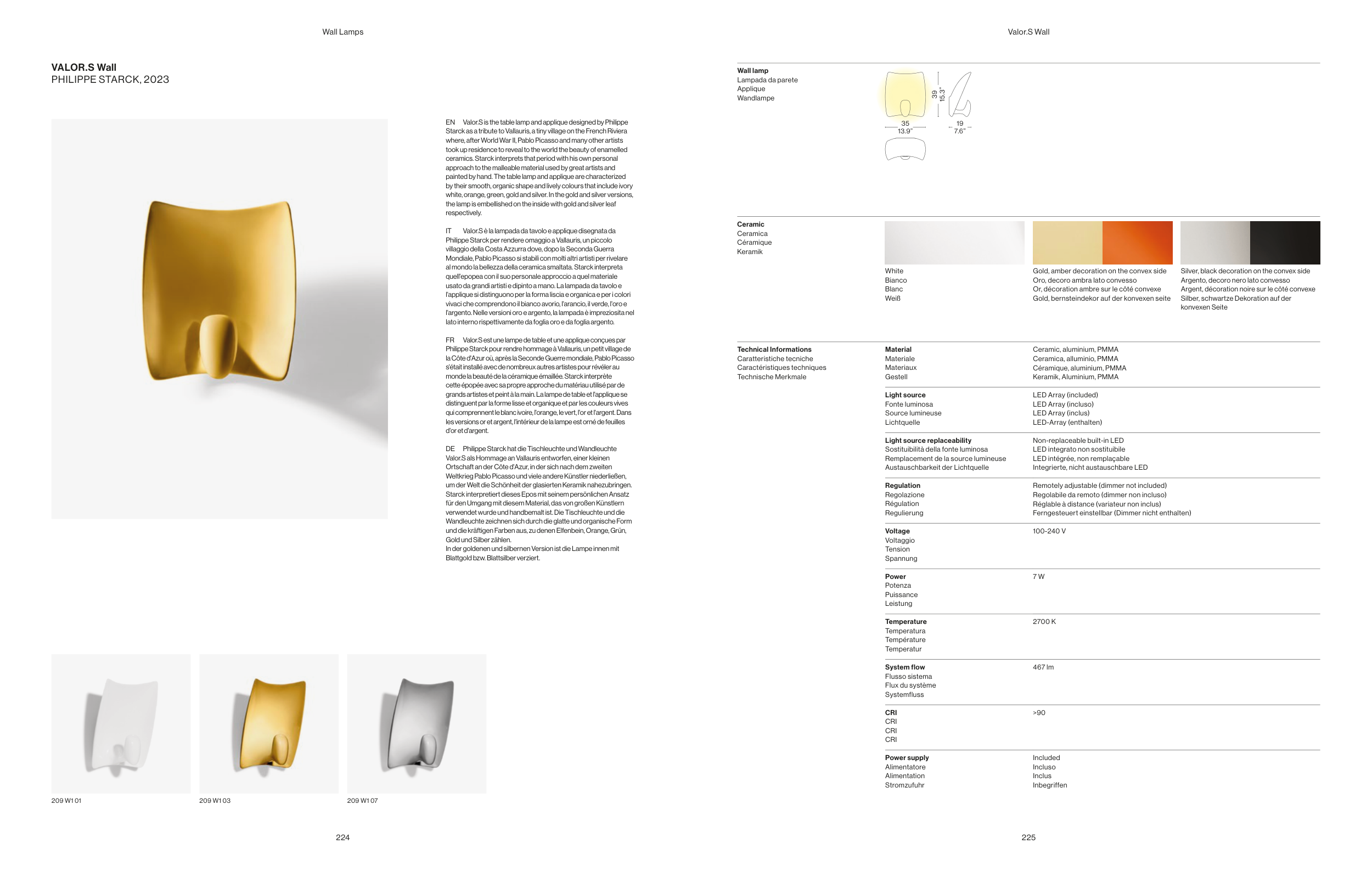 Valor.S is the table lamp and applique designed by Philippe
