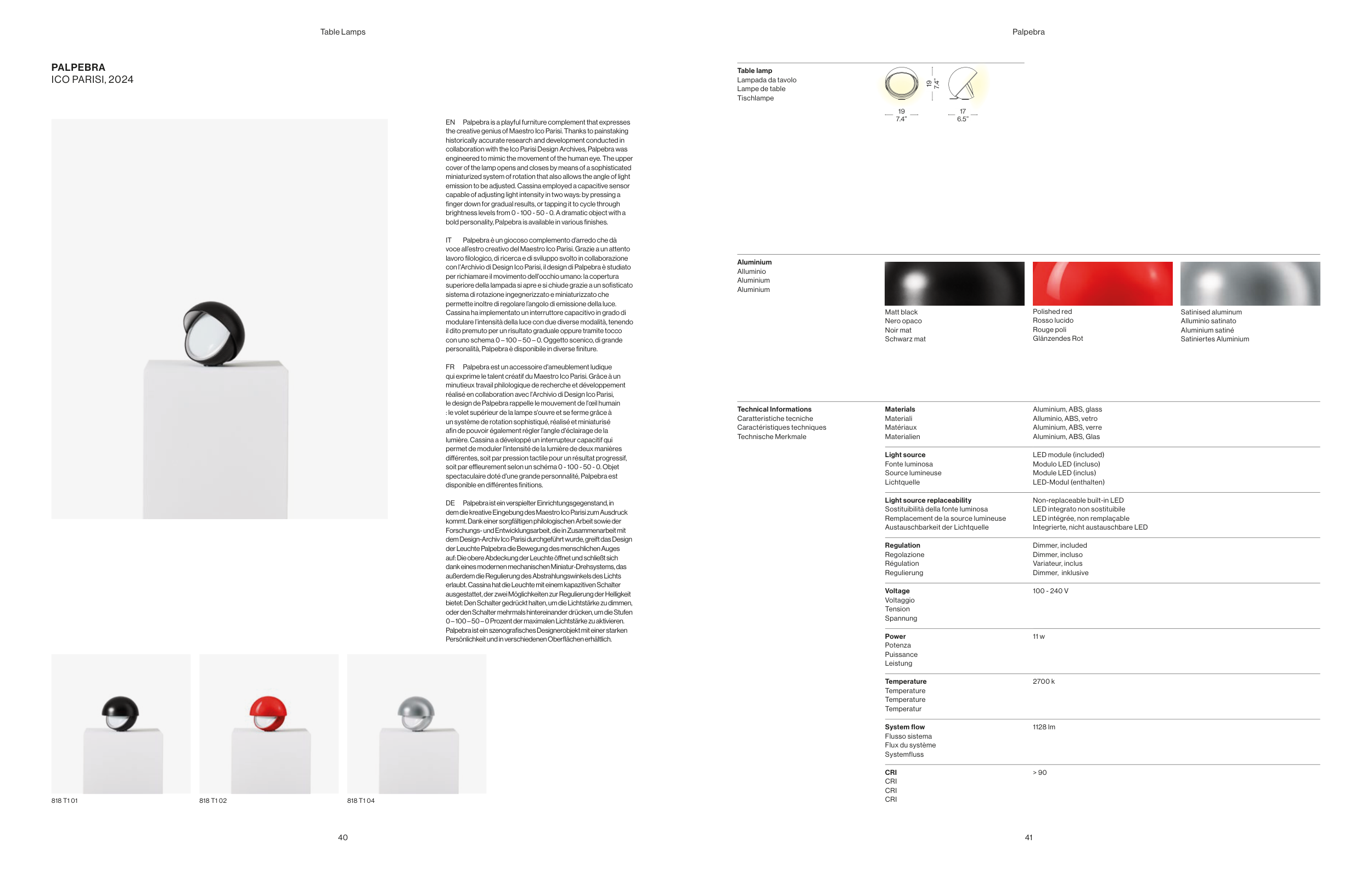 personalità, Palpebra è disponibile in diverse finiture.