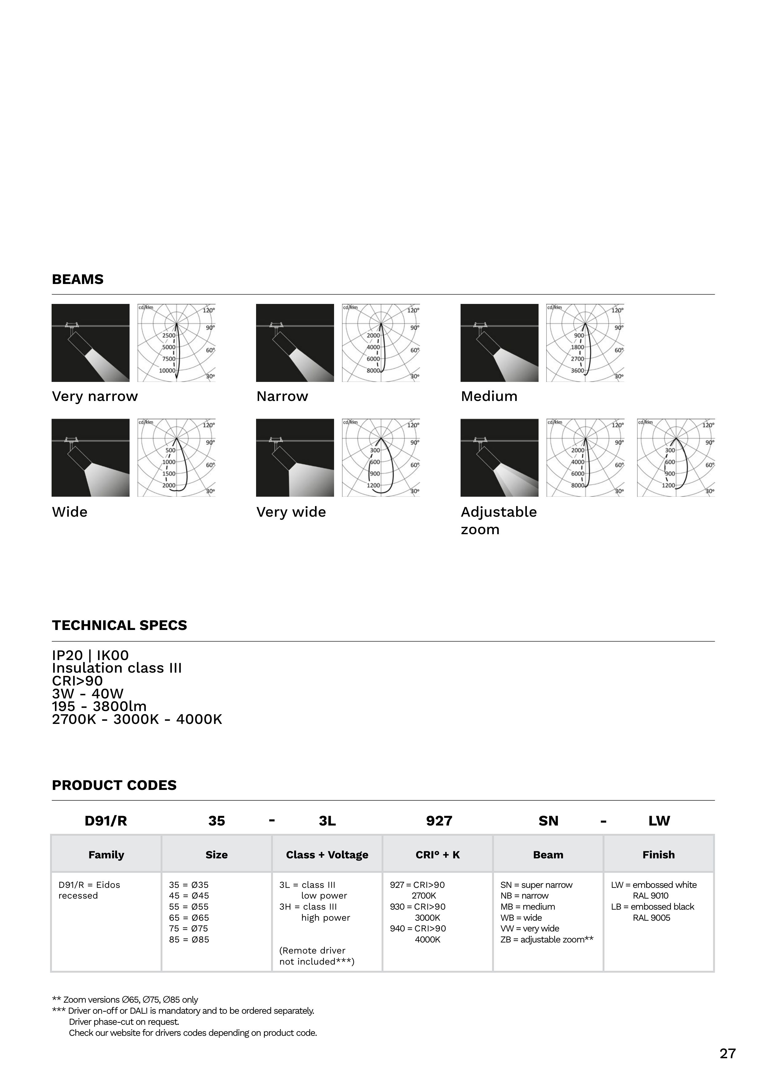 *** Driver on-off or DALI is mandatory and to be ordered separately.