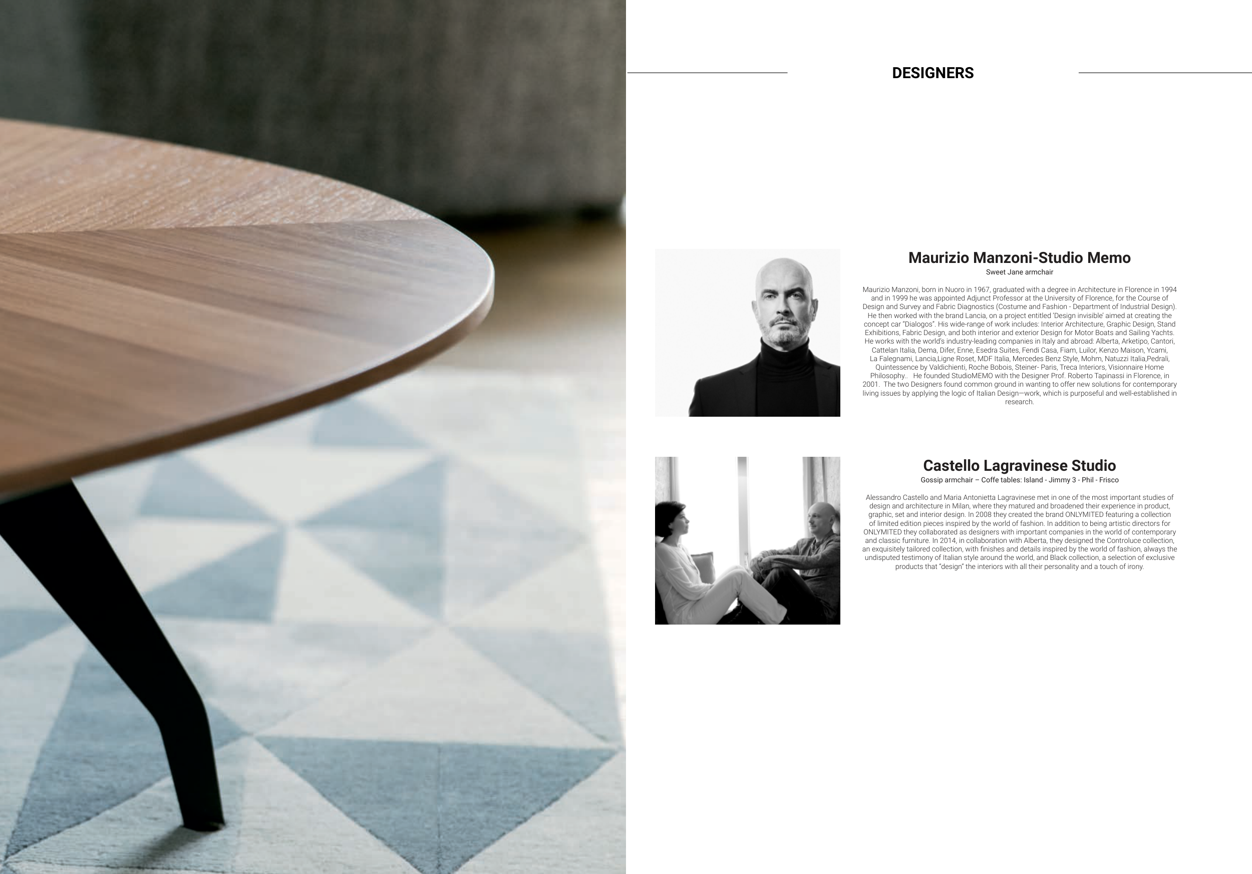 He works with the world’s industry-leading companies in Italy and abroad: Alberta, Arketipo, Cantori,