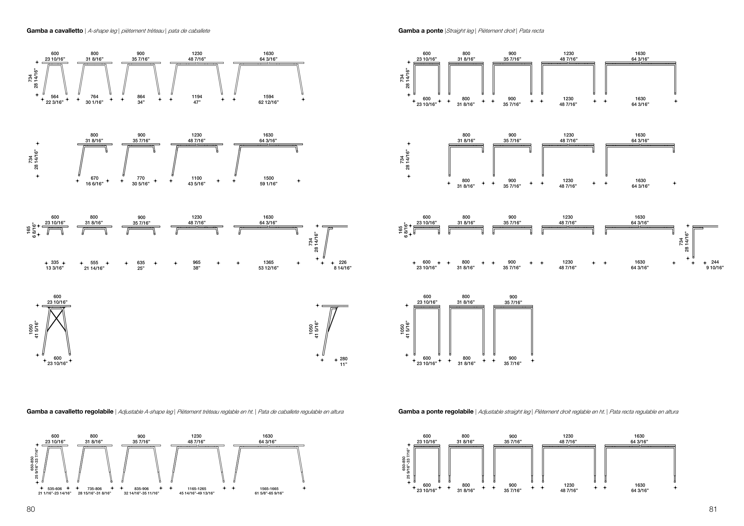 Gamba a ponte regolabile | Adjustable straight leg | Piètement droit reglable en ht. | Pata recta regulable en altura