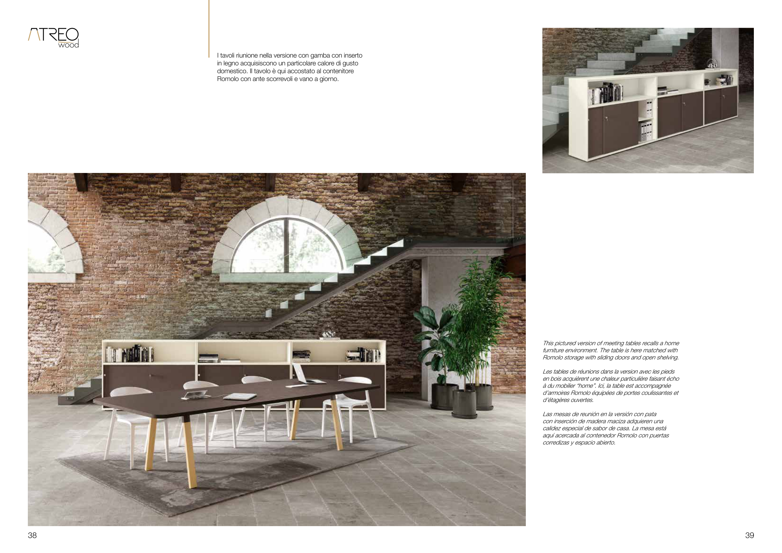 Romolo storage with sliding doors and open shelving.