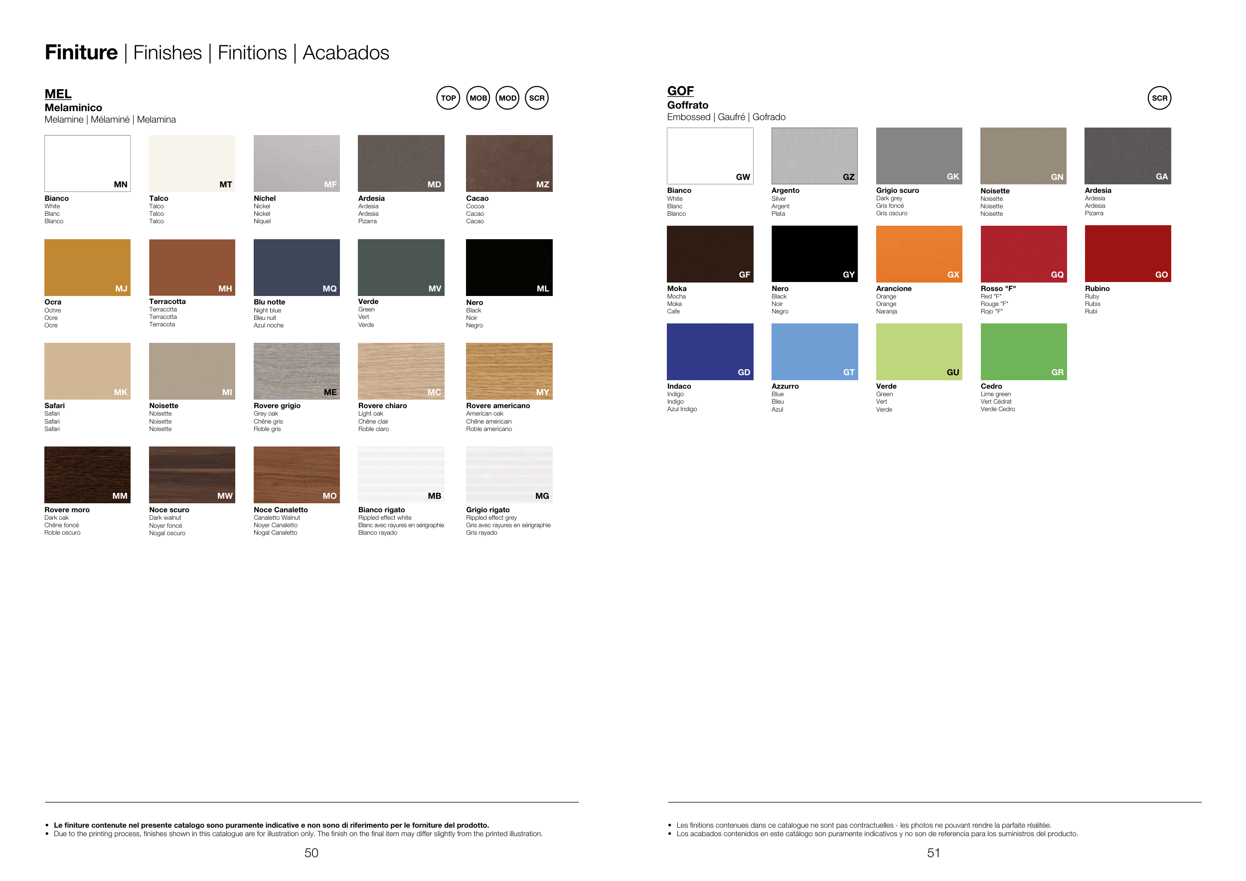 Finiture | Finishes | Finitions | Acabados
