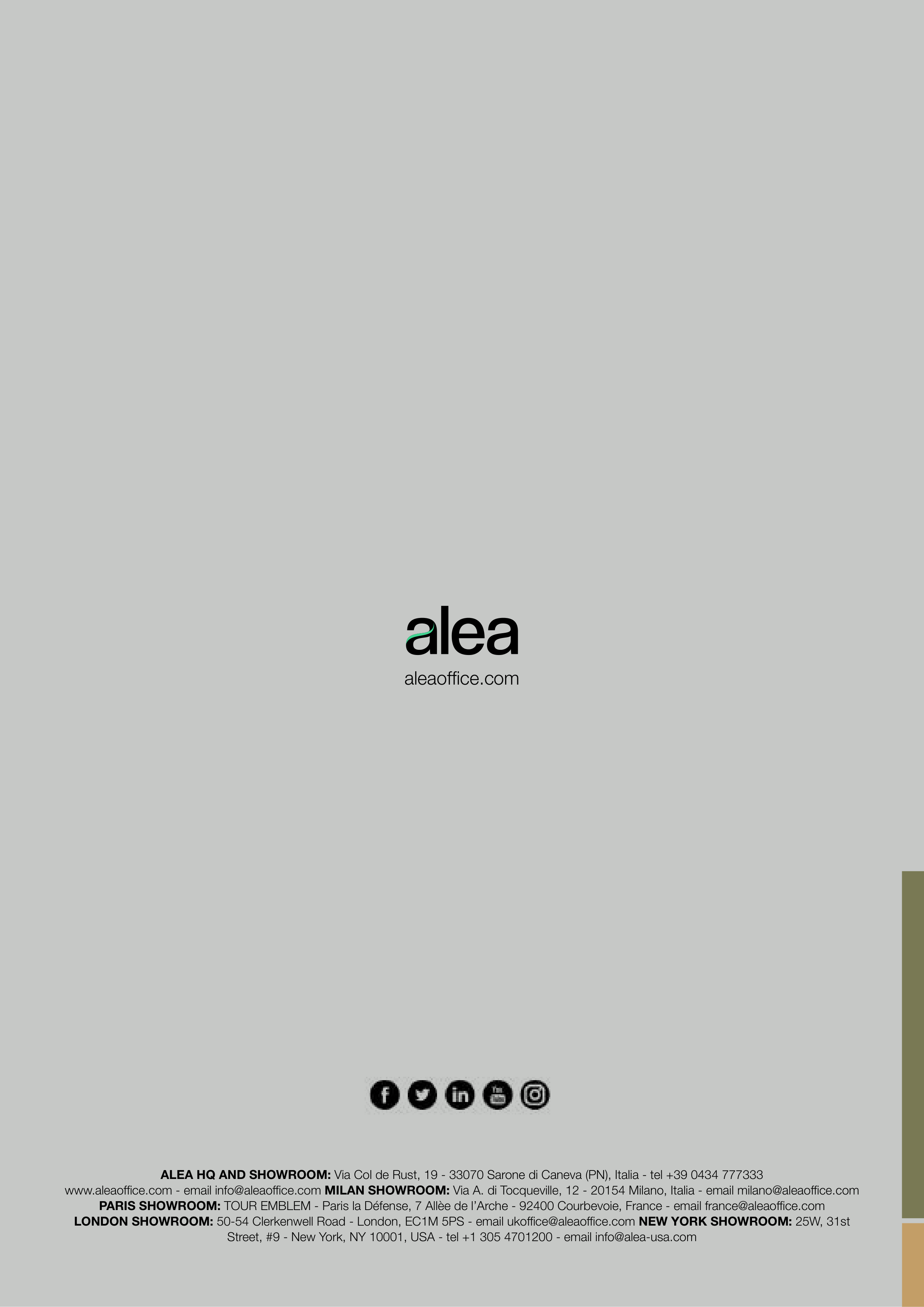 LONDON SHOWROOM: 50-54 Clerkenwell Road - London, EC1M 5PS - email ukoffice@aleaoffice.com NEW YORK SHOWROOM: 25W, 31st