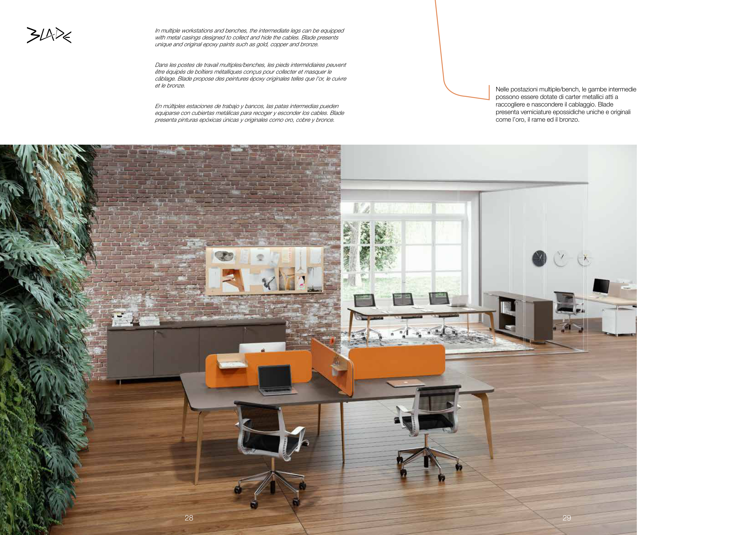 with metal casings designed to collect and hide the cables. Blade presents