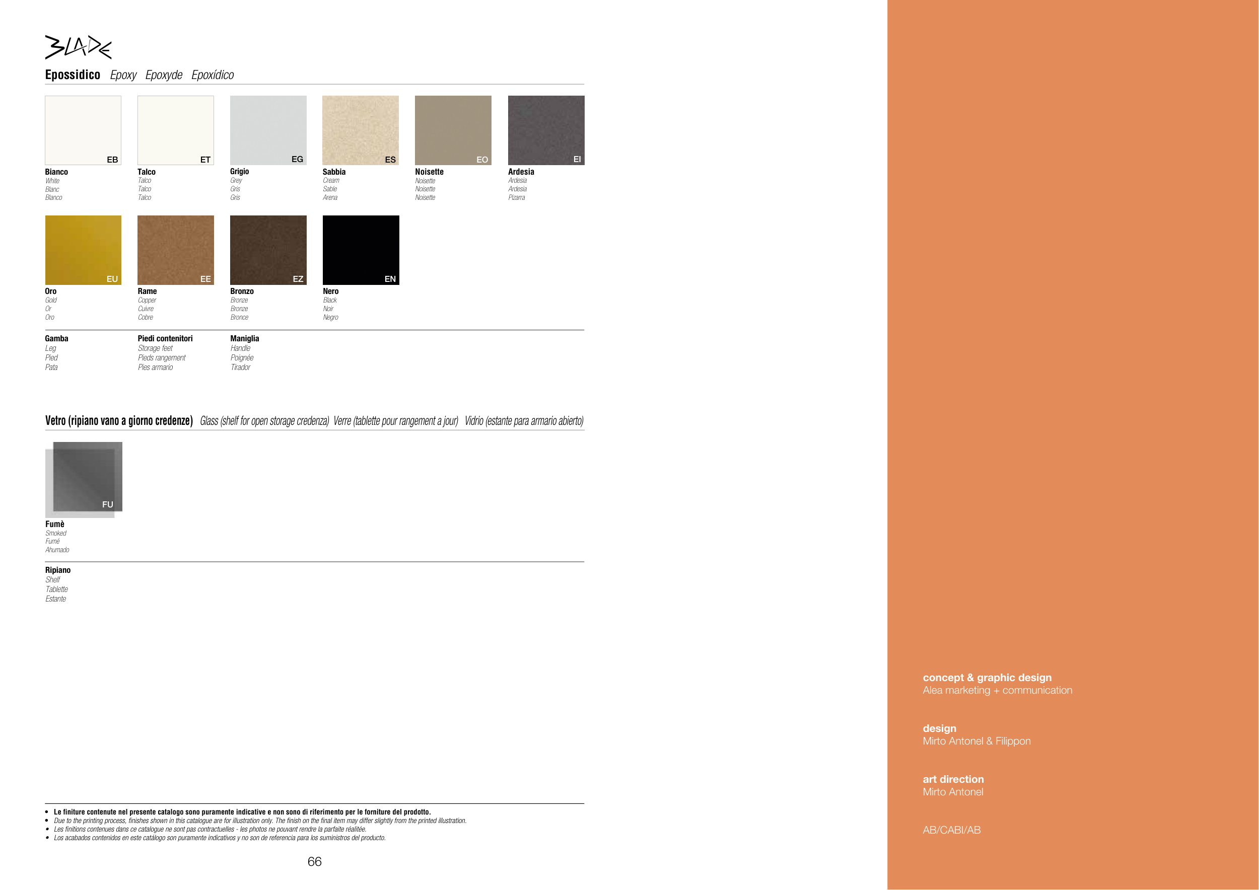 • Le finiture contenute nel presente catalogo sono puramente indicative e non sono di riferimento per le forniture del prodotto.