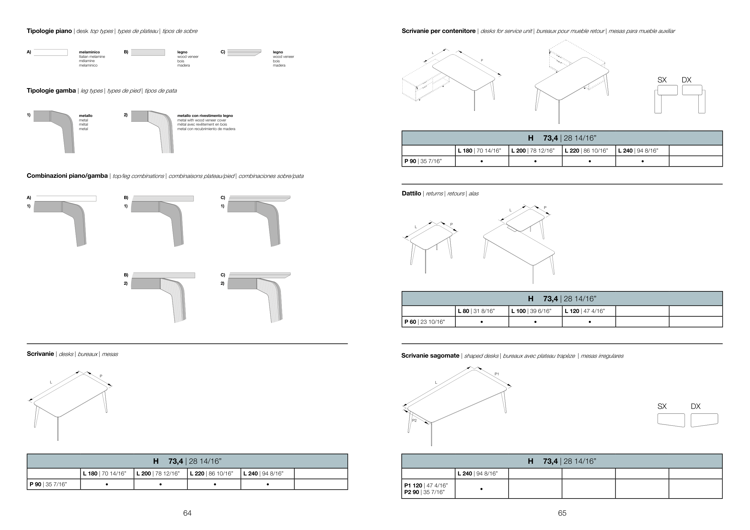 Tipologie piano | desk top types | types de plateau | tipos de sobre