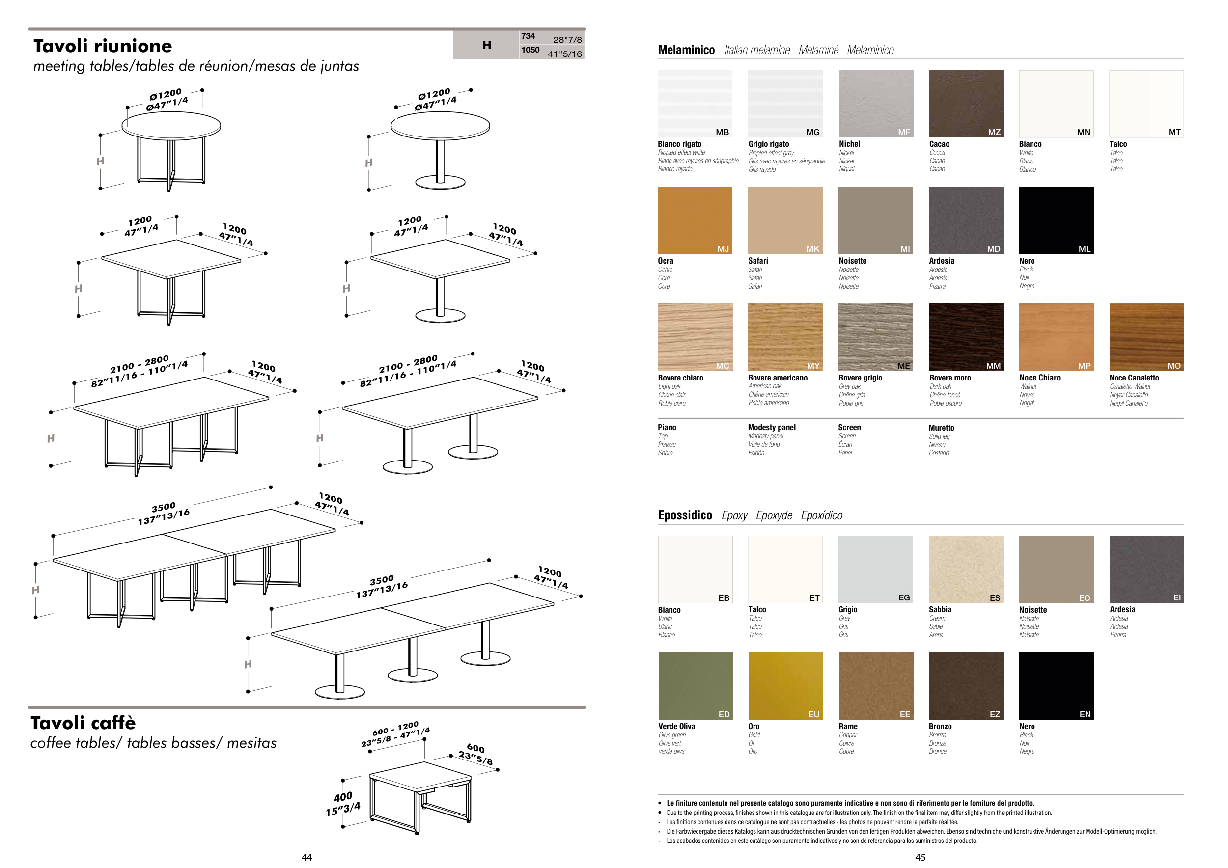 • Le finiture contenute nel presente catalogo sono puramente indicative e non sono di riferimento per le forniture del prodotto.