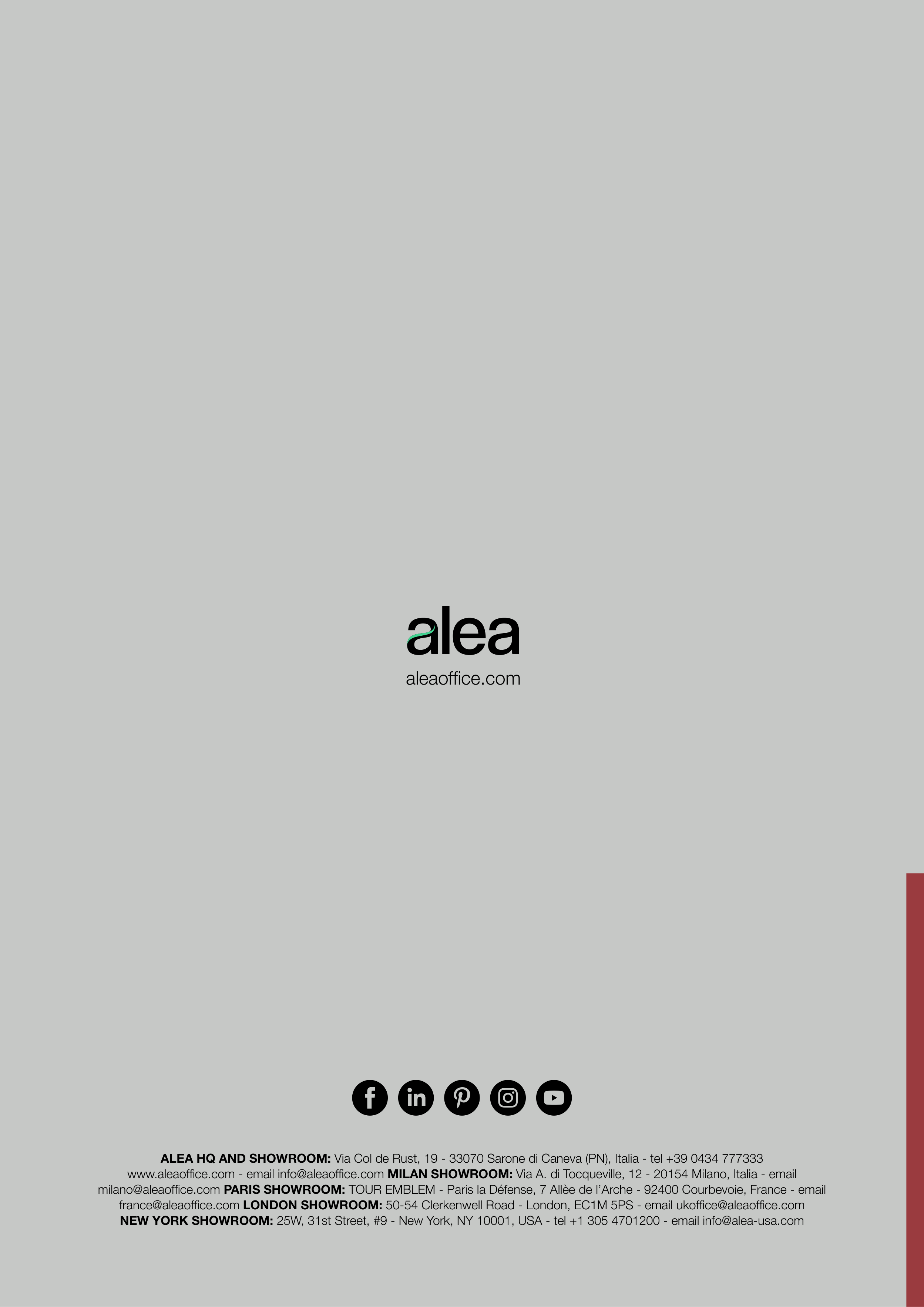 milano@aleaoffice.com PARIS SHOWROOM: TOUR EMBLEM - Paris la Défense, 7 Allèe de l’Arche - 92400 Courbevoie, France - email
