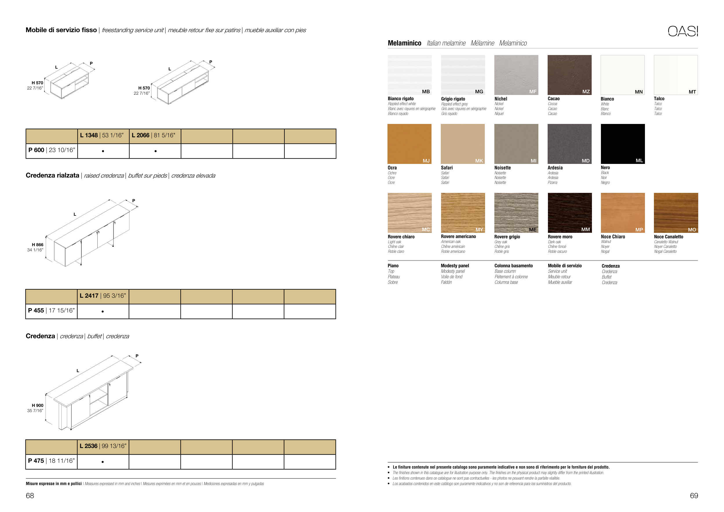 • Le finiture contenute nel presente catalogo sono puramente indicative e non sono di riferimento per le forniture del prodotto.