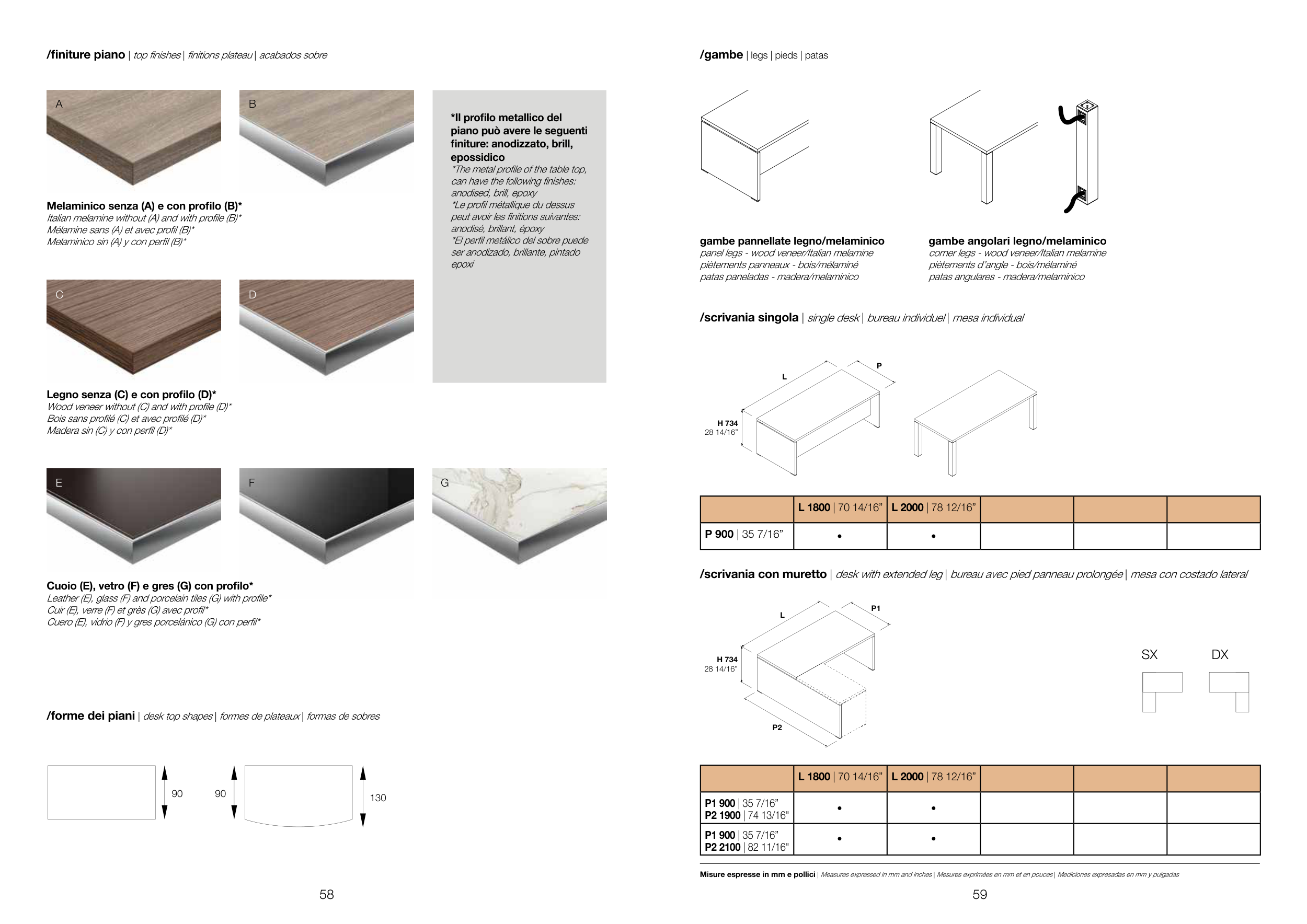 /forme dei piani | desk top shapes | formes de plateaux | formas de sobres