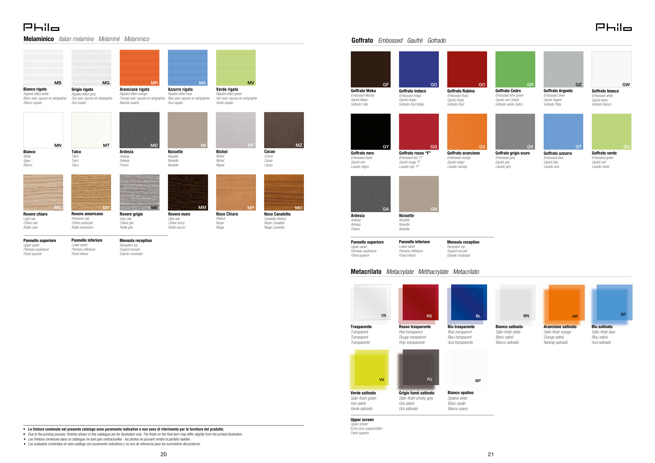 • Le finiture contenute nel presente catalogo sono puramente indicative e non sono di riferimento per le forniture del prodotto.