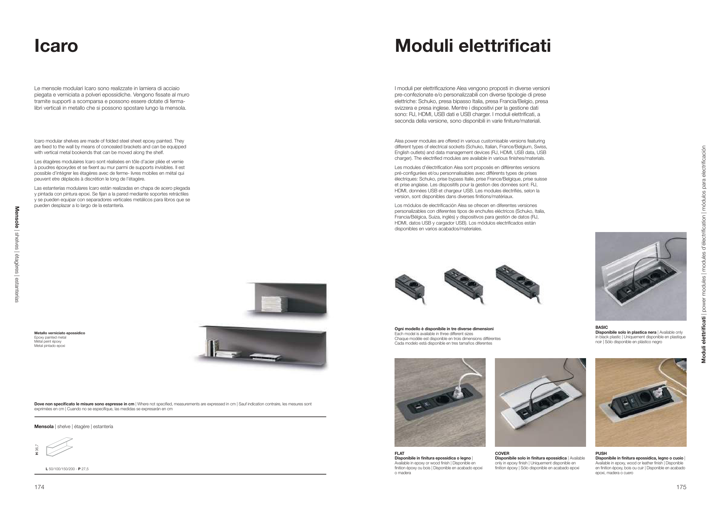 Dove non specificato le misure sono espresse in cm | Where not specified, measurements are expressed in cm | Sauf indication contraire, les mesures sont