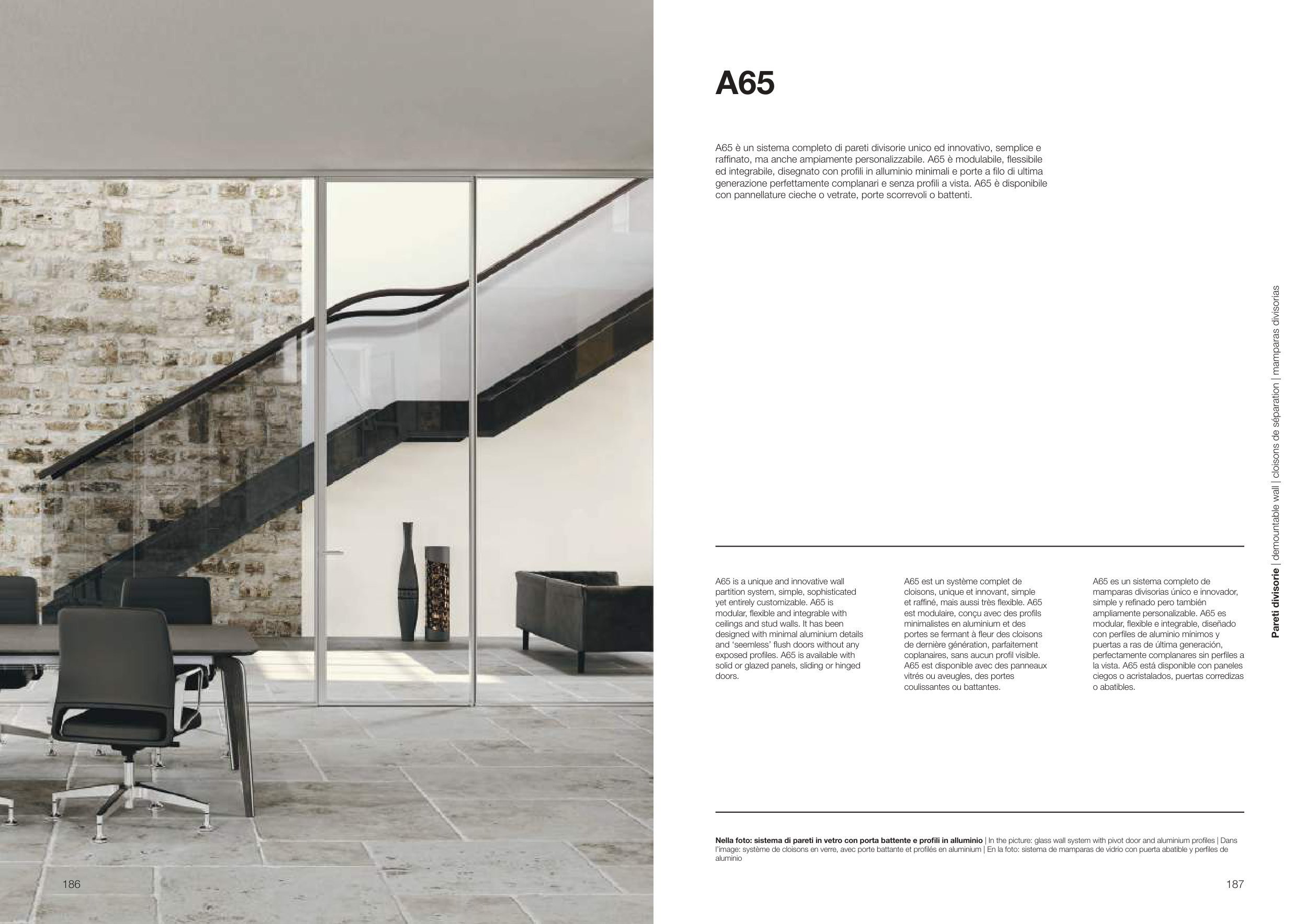 A65 è un sistema completo di pareti divisorie unico ed innovativo, semplice e