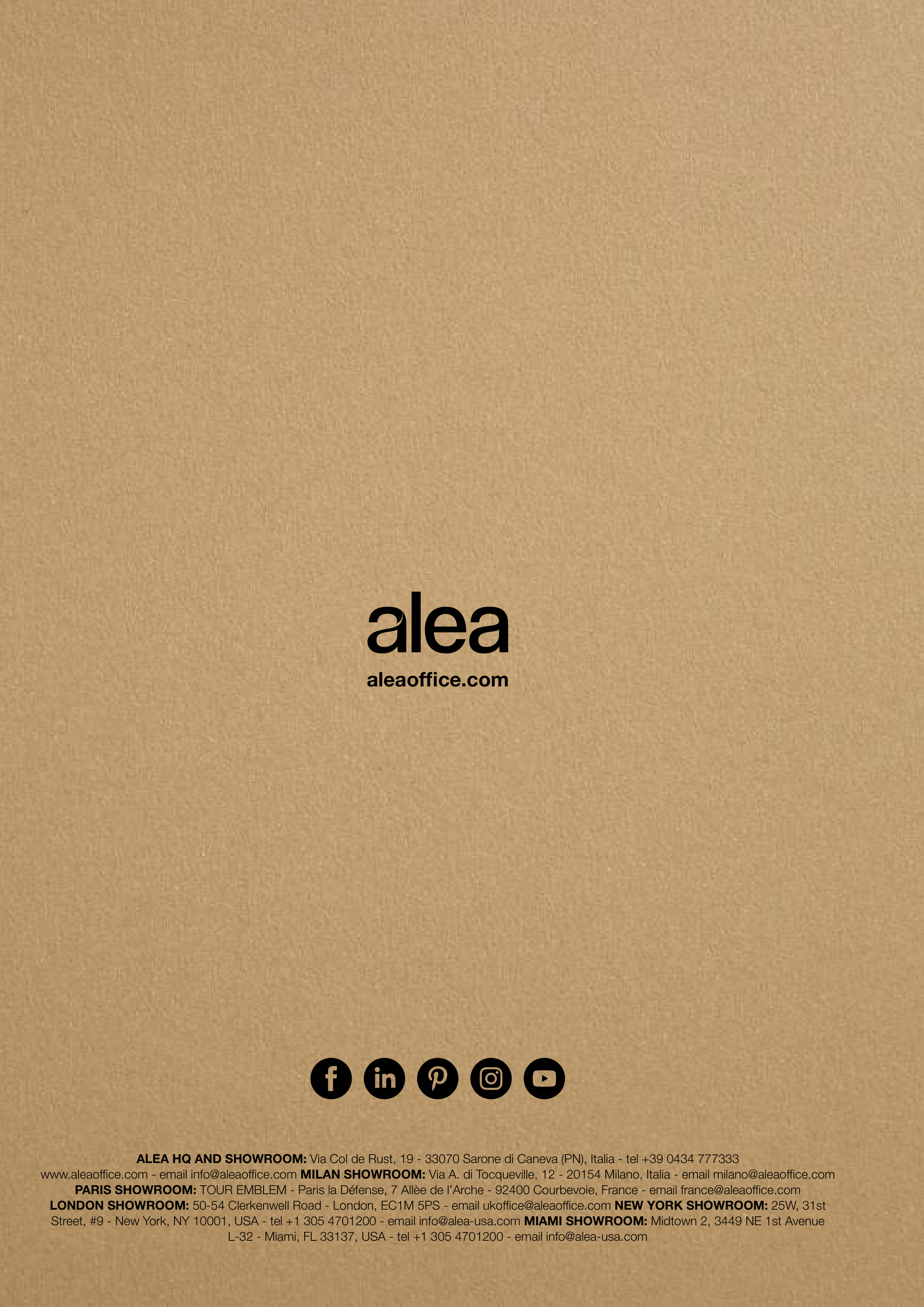 LONDON SHOWROOM: 50-54 Clerkenwell Road - London, EC1M 5PS - email ukoffice@aleaoffice.com NEW YORK SHOWROOM: 25W, 31st