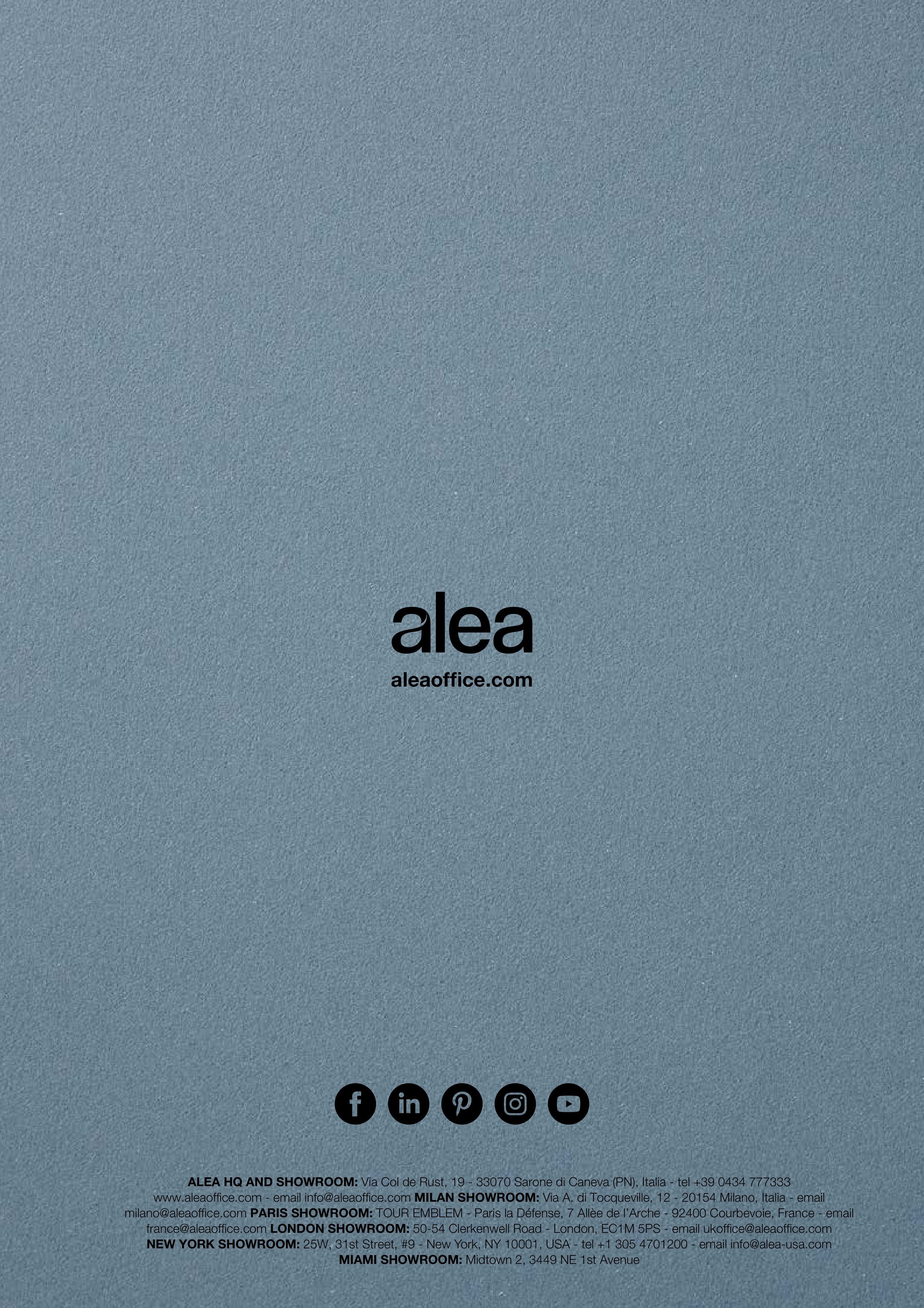 milano@aleaoffice.com PARIS SHOWROOM: TOUR EMBLEM - Paris la Défense, 7 Allèe de l’Arche - 92400 Courbevoie, France - email