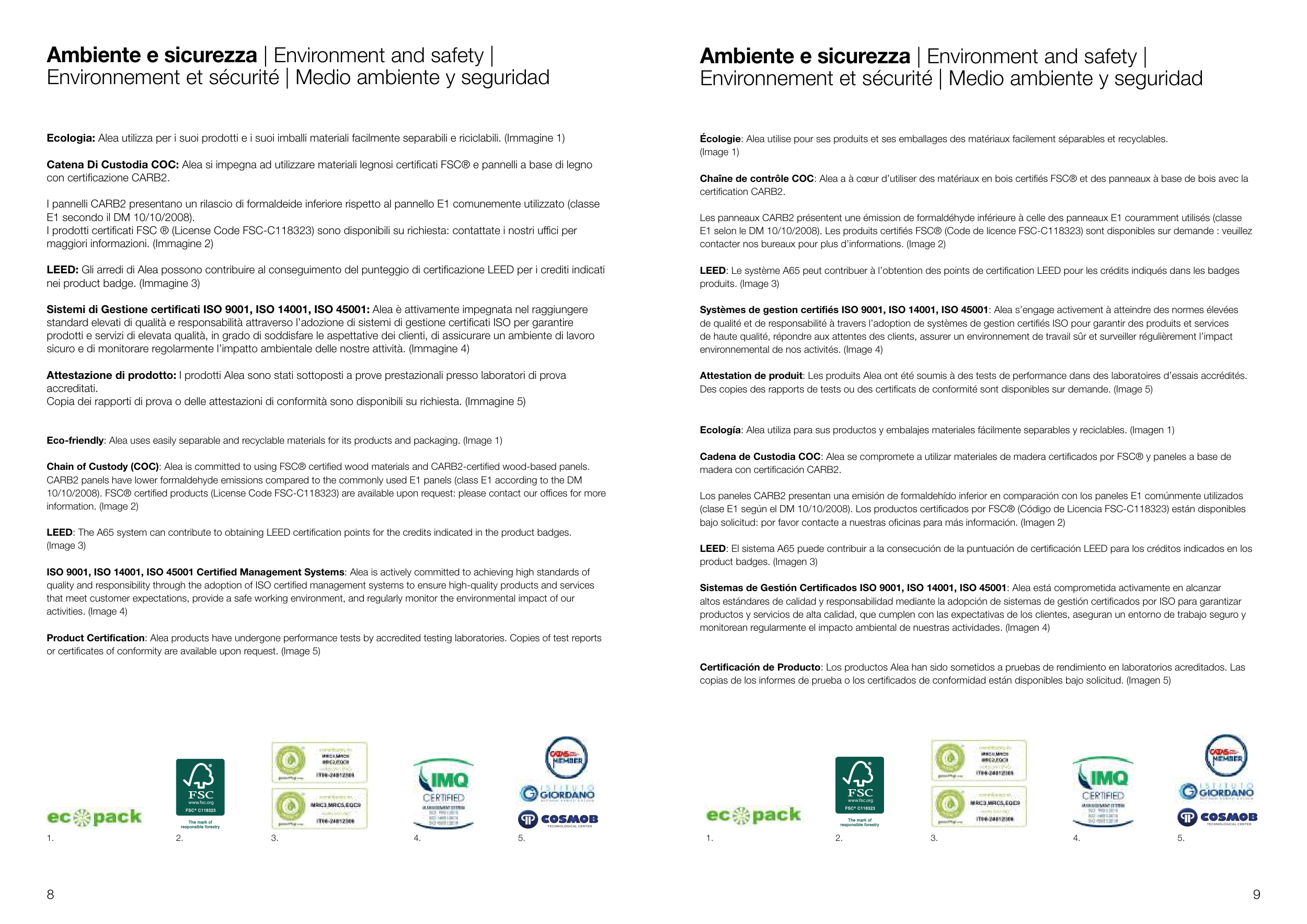 10/10/2008). FSC® certified products (License Code FSC-C118323) are available upon request: please contact our offices for more