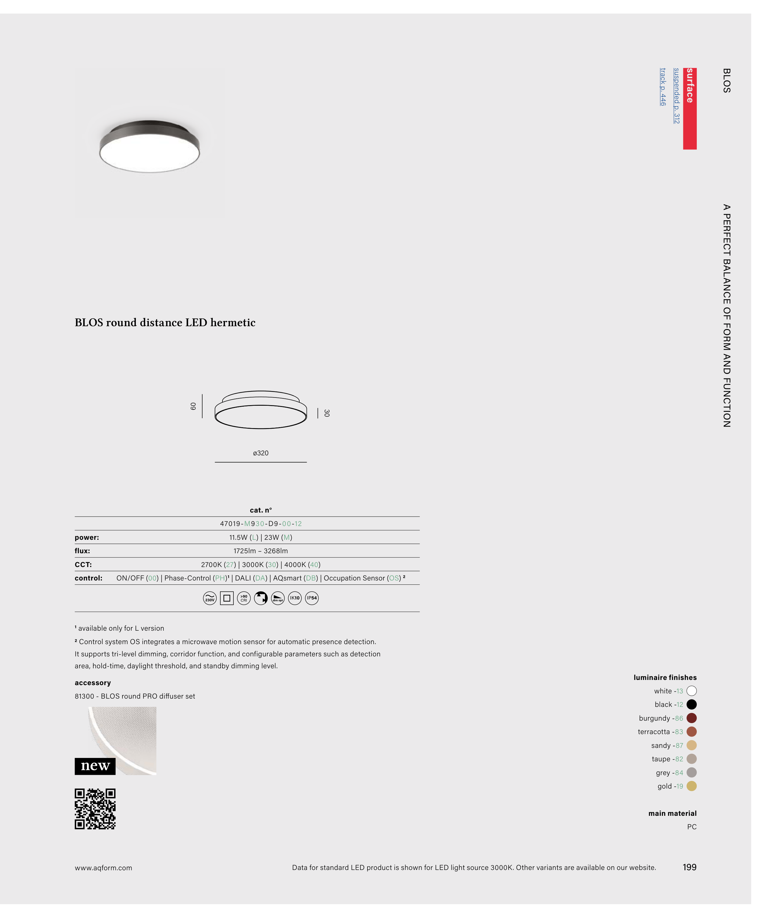 2 Control system OS integrates a microwave motion sensor for automatic presence detection.