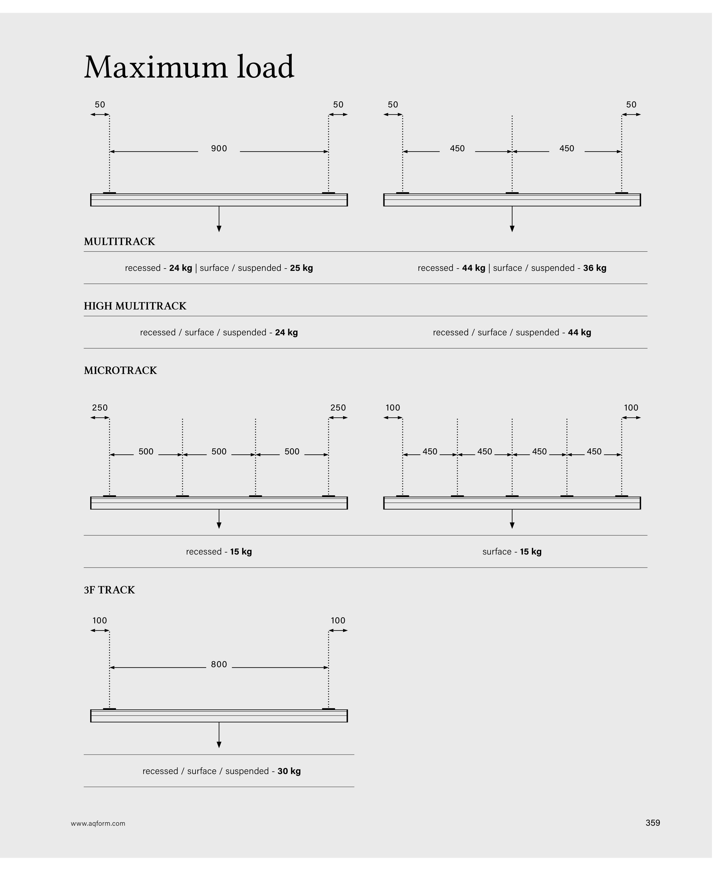 recessed - 24 kg | surface / suspended - 25 kg