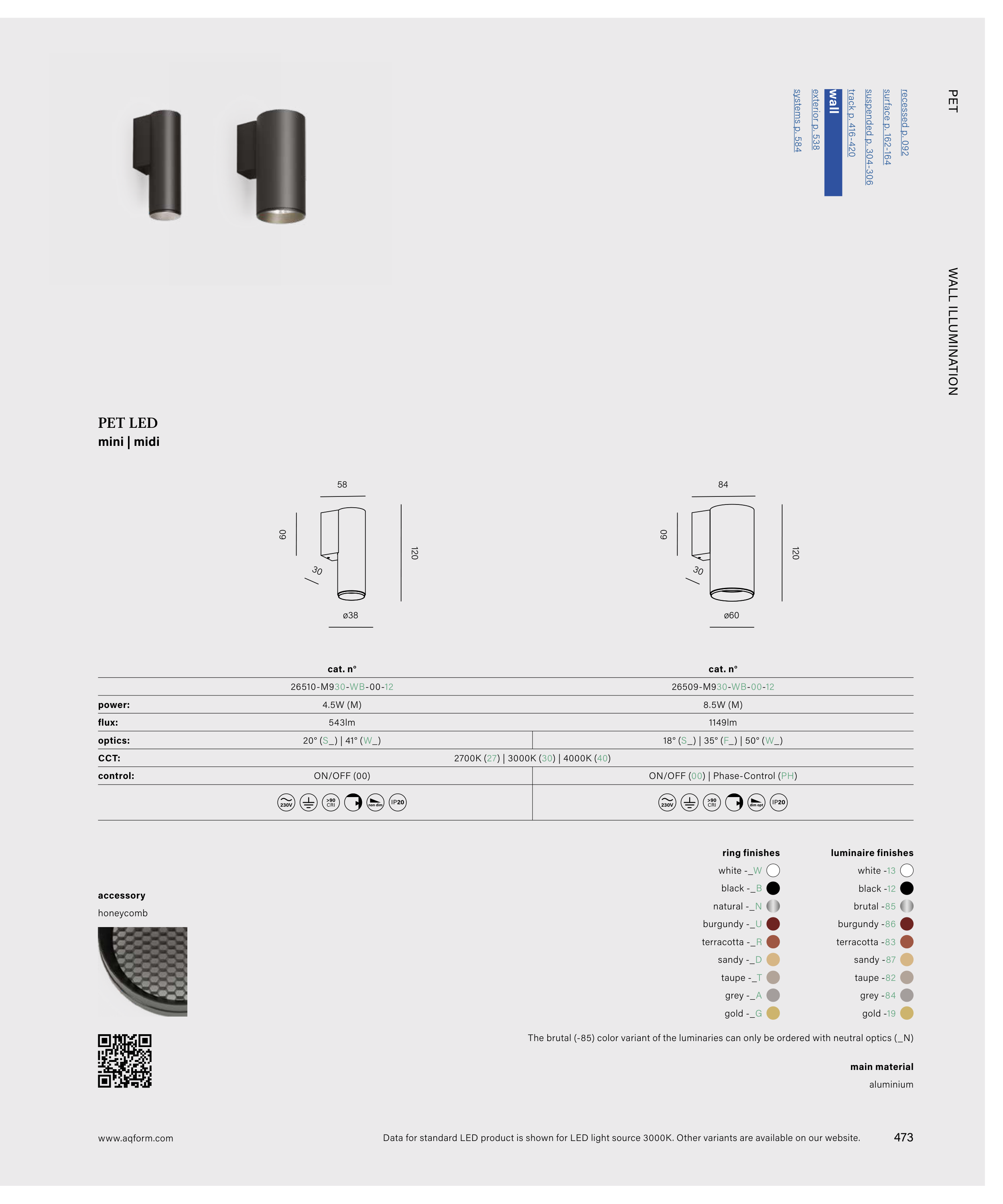 Data for standard LED product is shown for LED light source 3000K. Other variants are available on our website.
