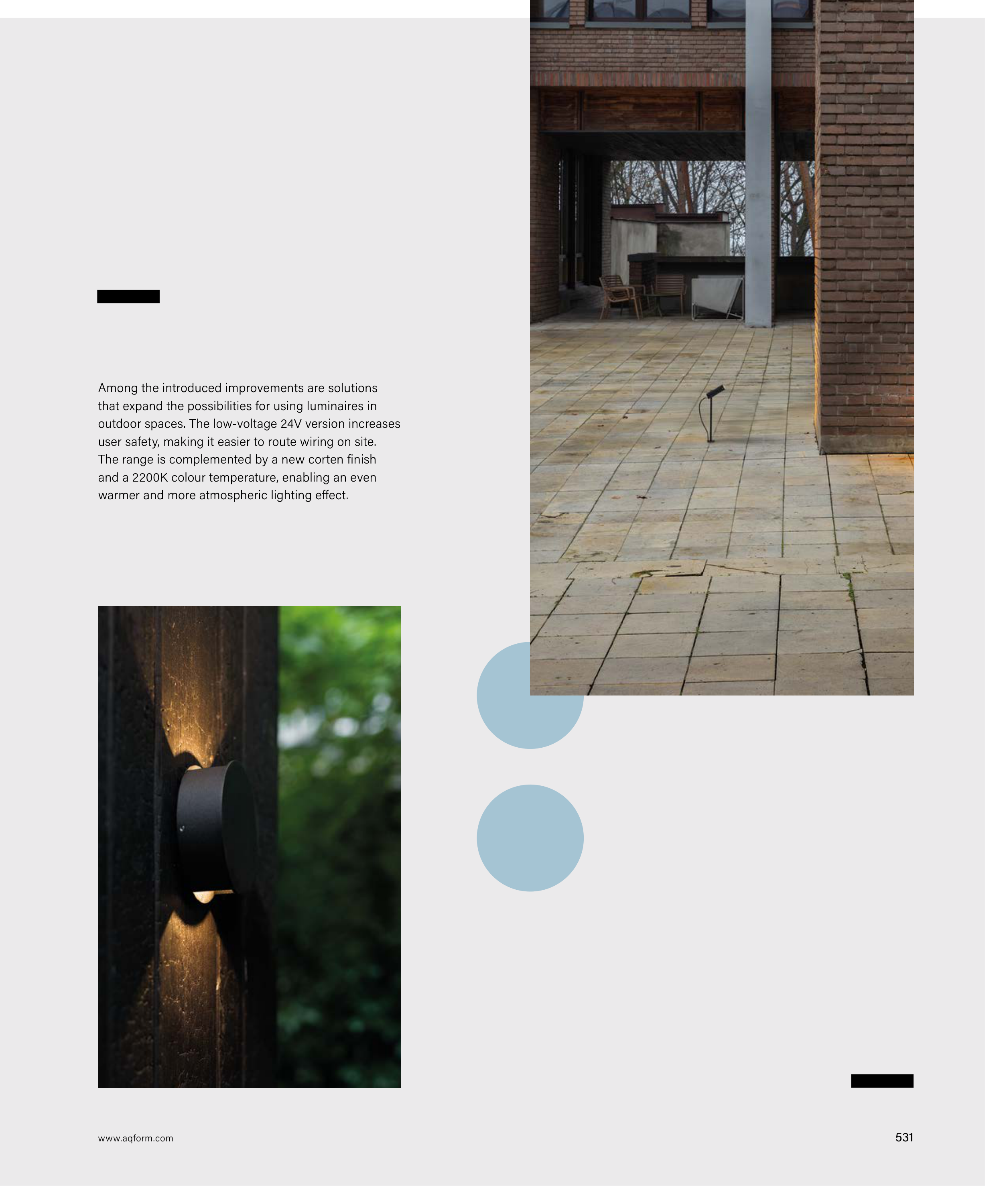 outdoor spaces. The low-voltage 24V version increases