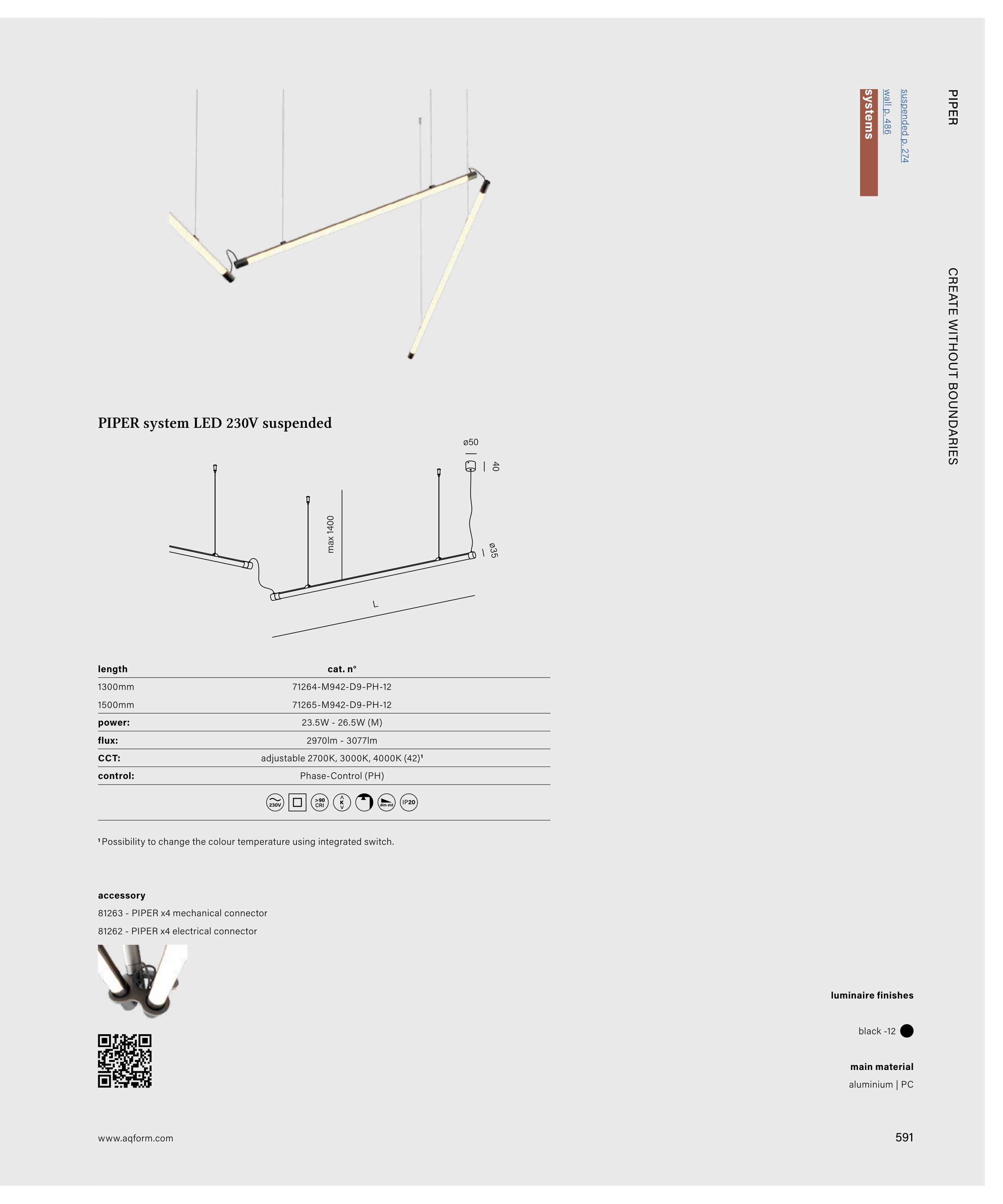 PIPER system LED 230V suspended