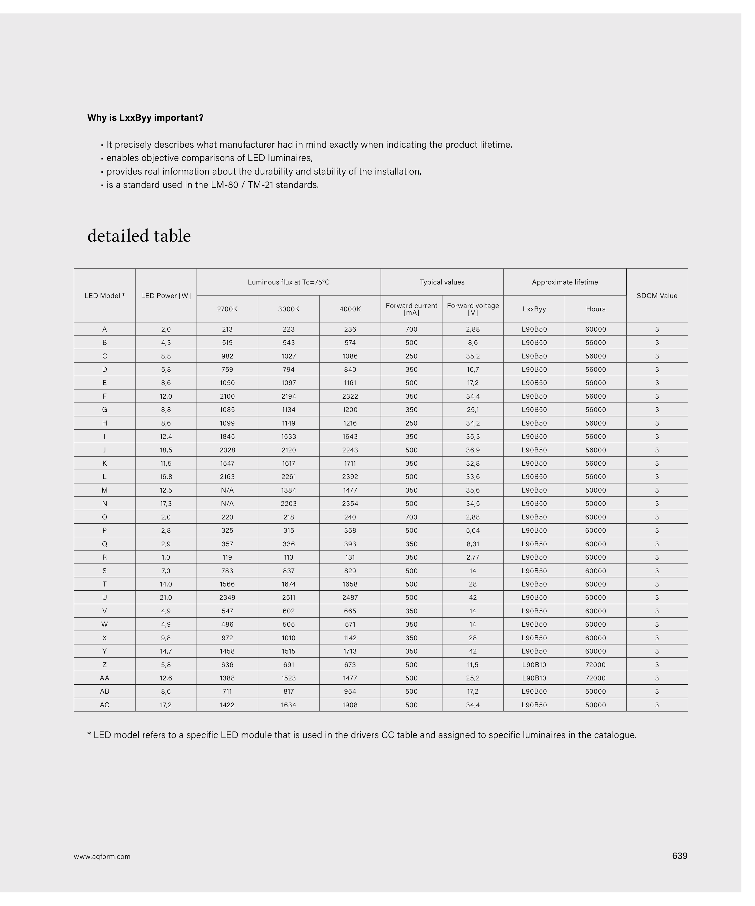 * LED model refers to a specific LED module that is used in the drivers CC table and assigned to specific luminaires in the catalogue.