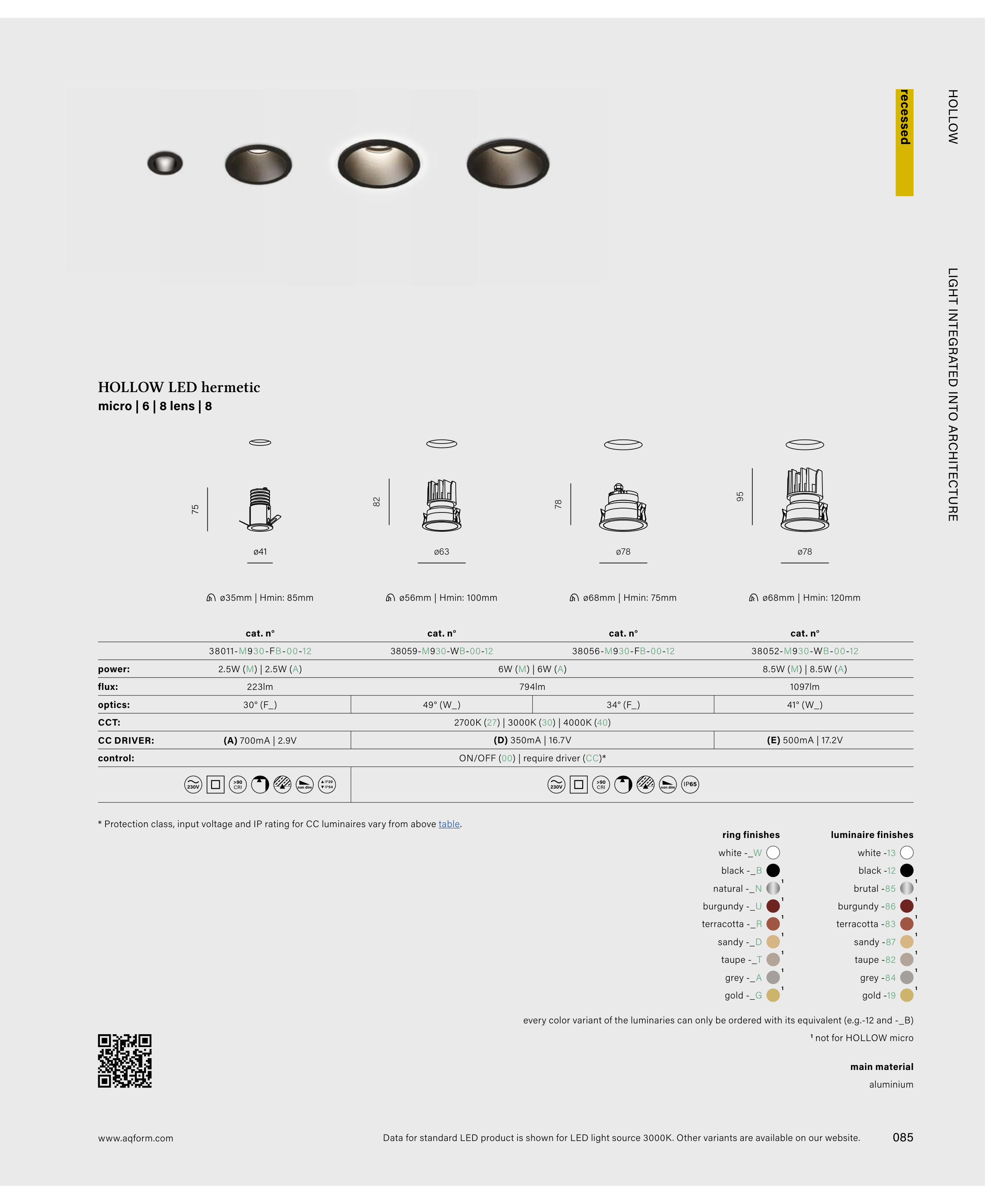 * Protection class, input voltage and IP rating for CC luminaires vary from above table.