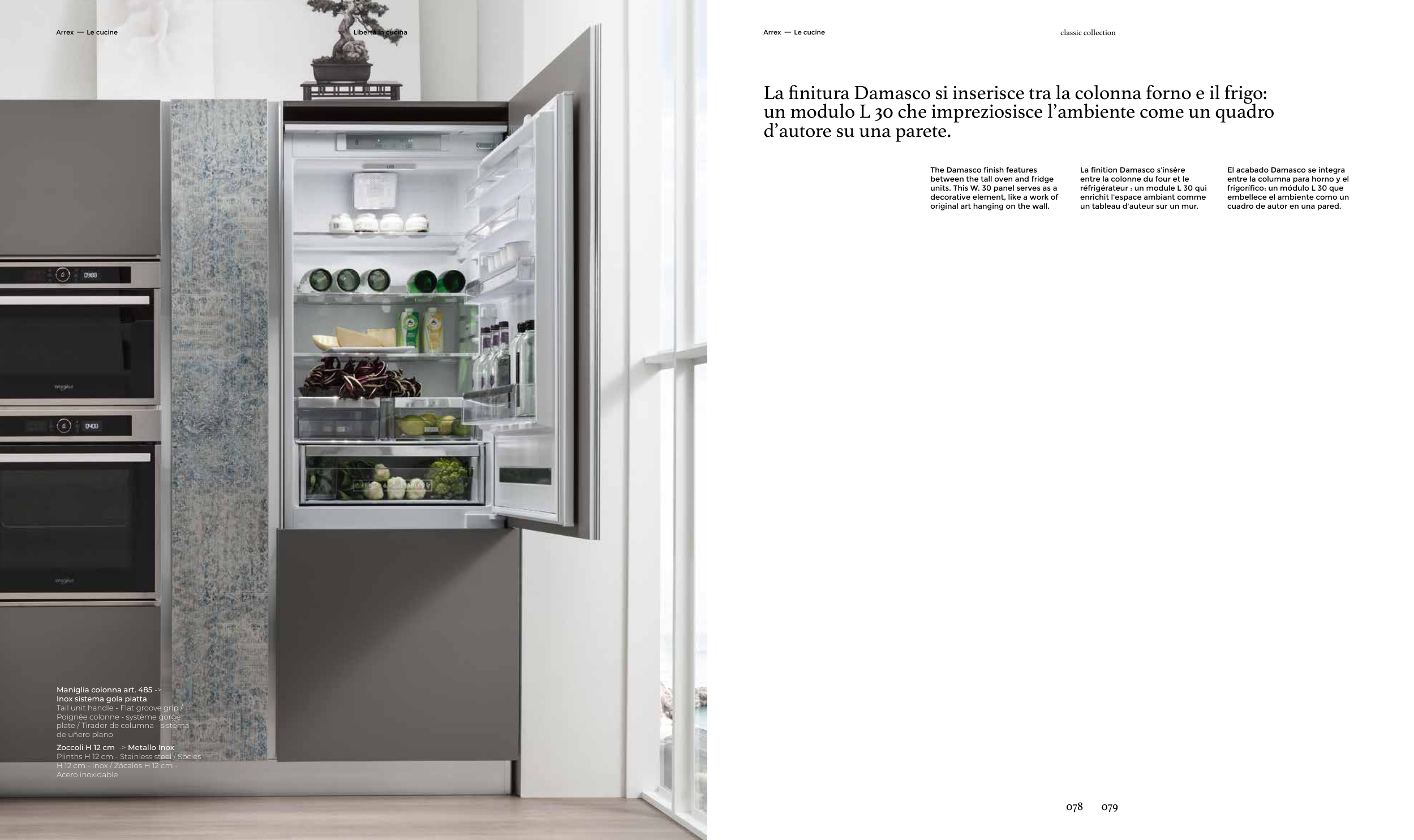 La finitura Damasco si inserisce tra la colonna forno e il frigo: