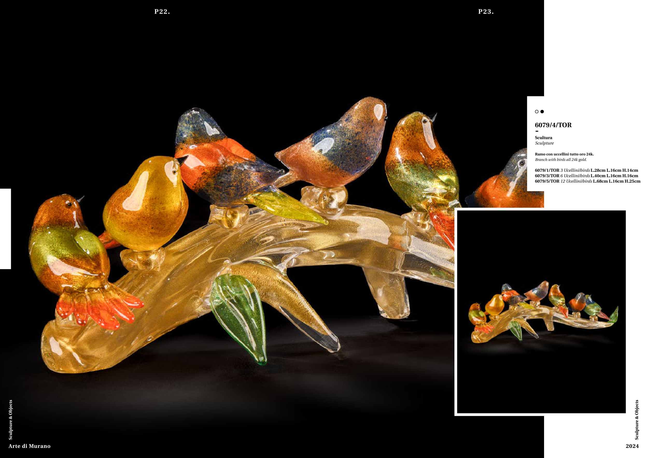 Ramo con uccellini tutto oro 24k.