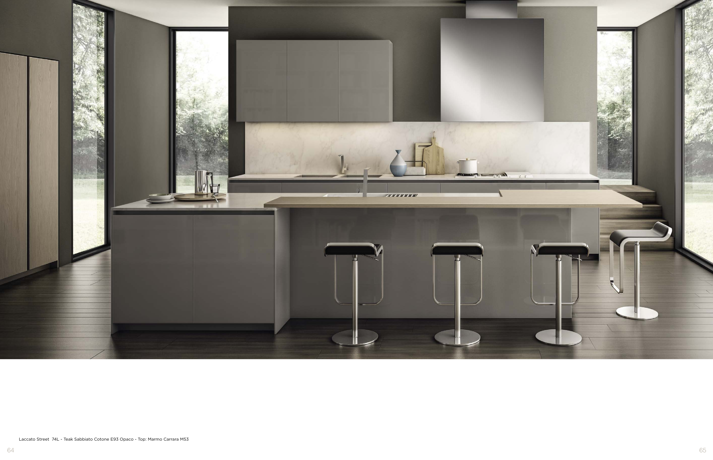 Laccato Street 74L - Teak Sabbiato Cotone E93 Opaco - Top: Marmo Carrara M53