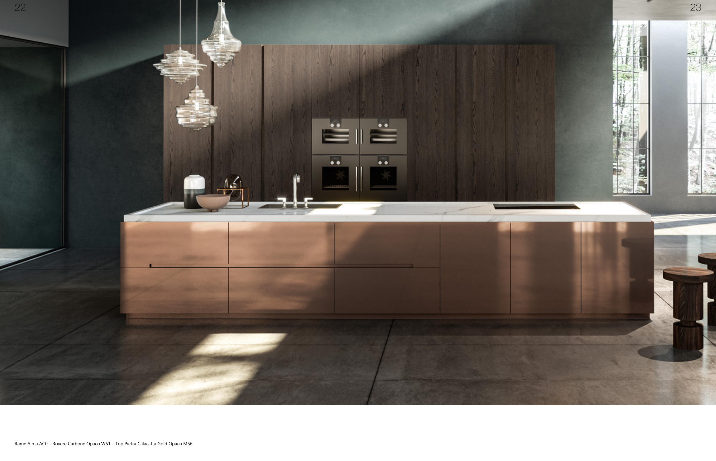 Rame Alma AC0 – Rovere Carbone Opaco W51 – Top Pietra Calacatta Gold Opaco M56