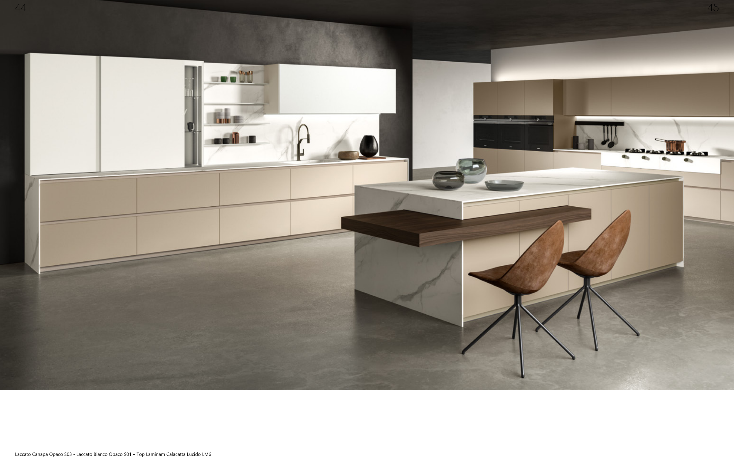 Laccato Canapa Opaco S03 - Laccato Bianco Opaco S01 – Top Laminam Calacatta Lucido LM6
