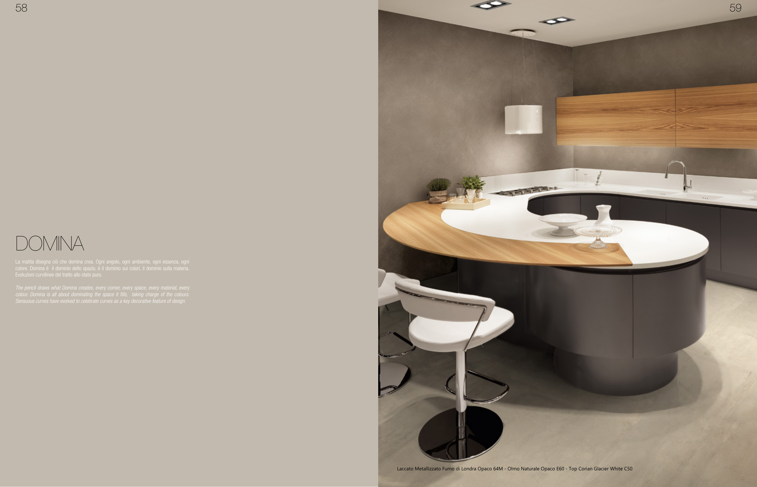 Laccato Metallizzato Fumo di Londra Opaco 64M - Olmo Naturale Opaco E60 - Top Corian Glacier White C50