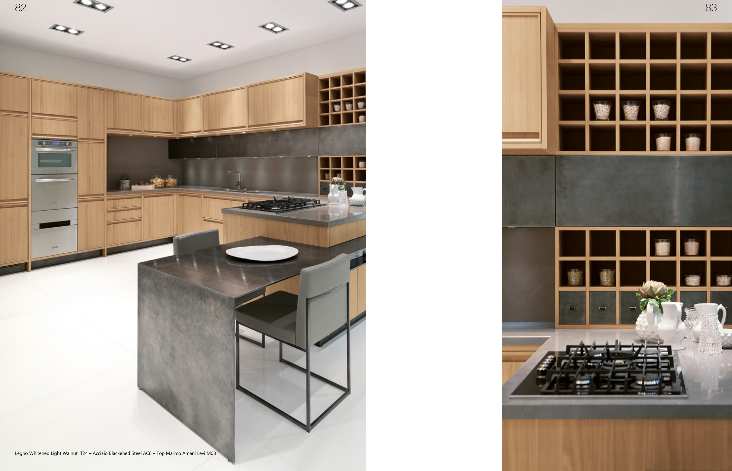 Legno Whitened Light Walnut T24 – Acciaio Blackened Steel AC8 – Top Marmo Amani Levi M08