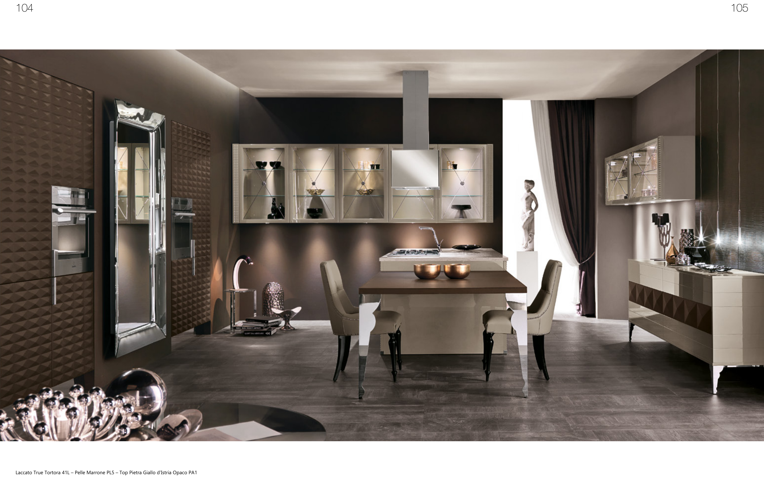 Laccato True Tortora 41L – Pelle Marrone PL5 – Top Pietra Giallo d’Istria Opaco PA1