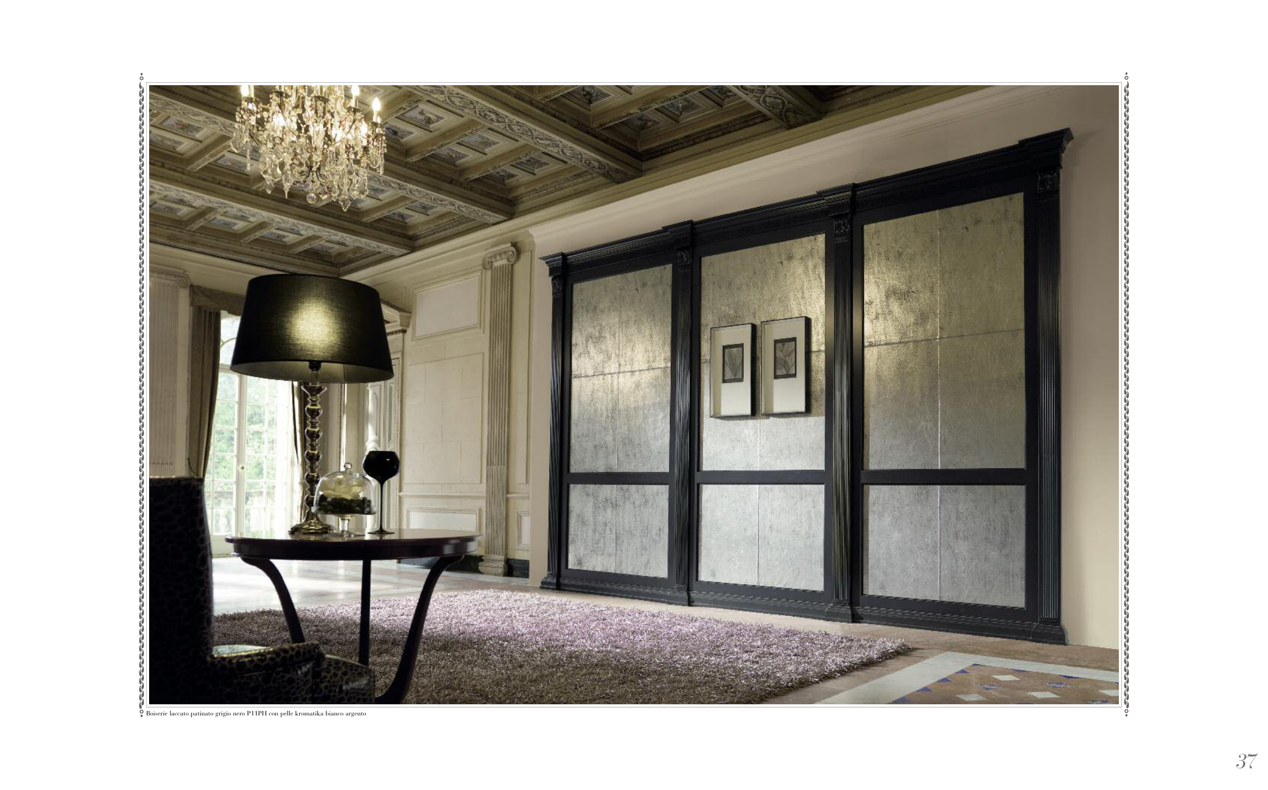 Boiserie laccato patinato grigio nero P11PH con pelle kromatika bianco argento
