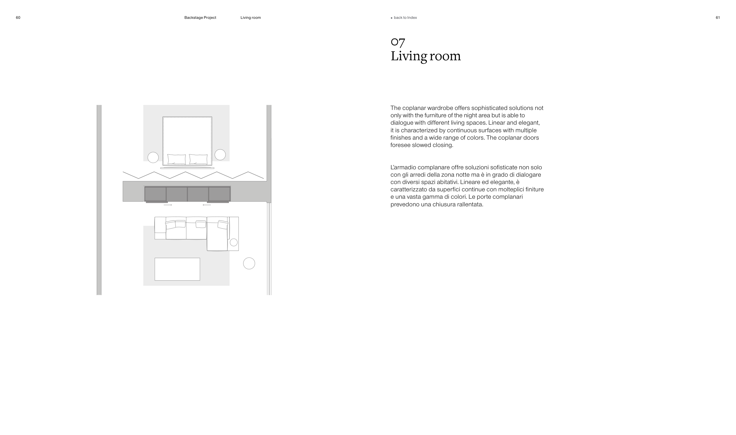 The coplanar wardrobe offers sophisticated solutions not
