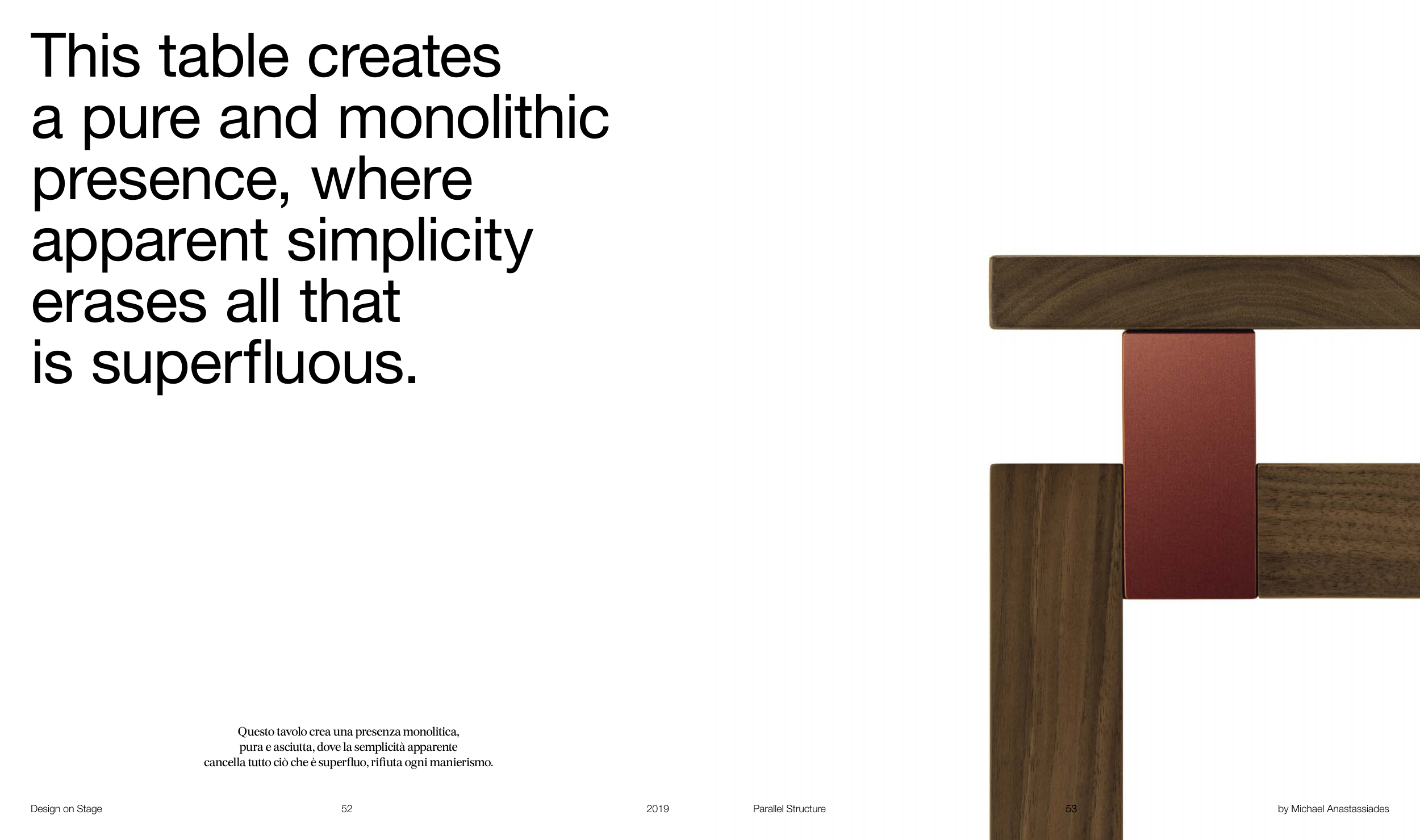 Questo tavolo crea una presenza monolitica,