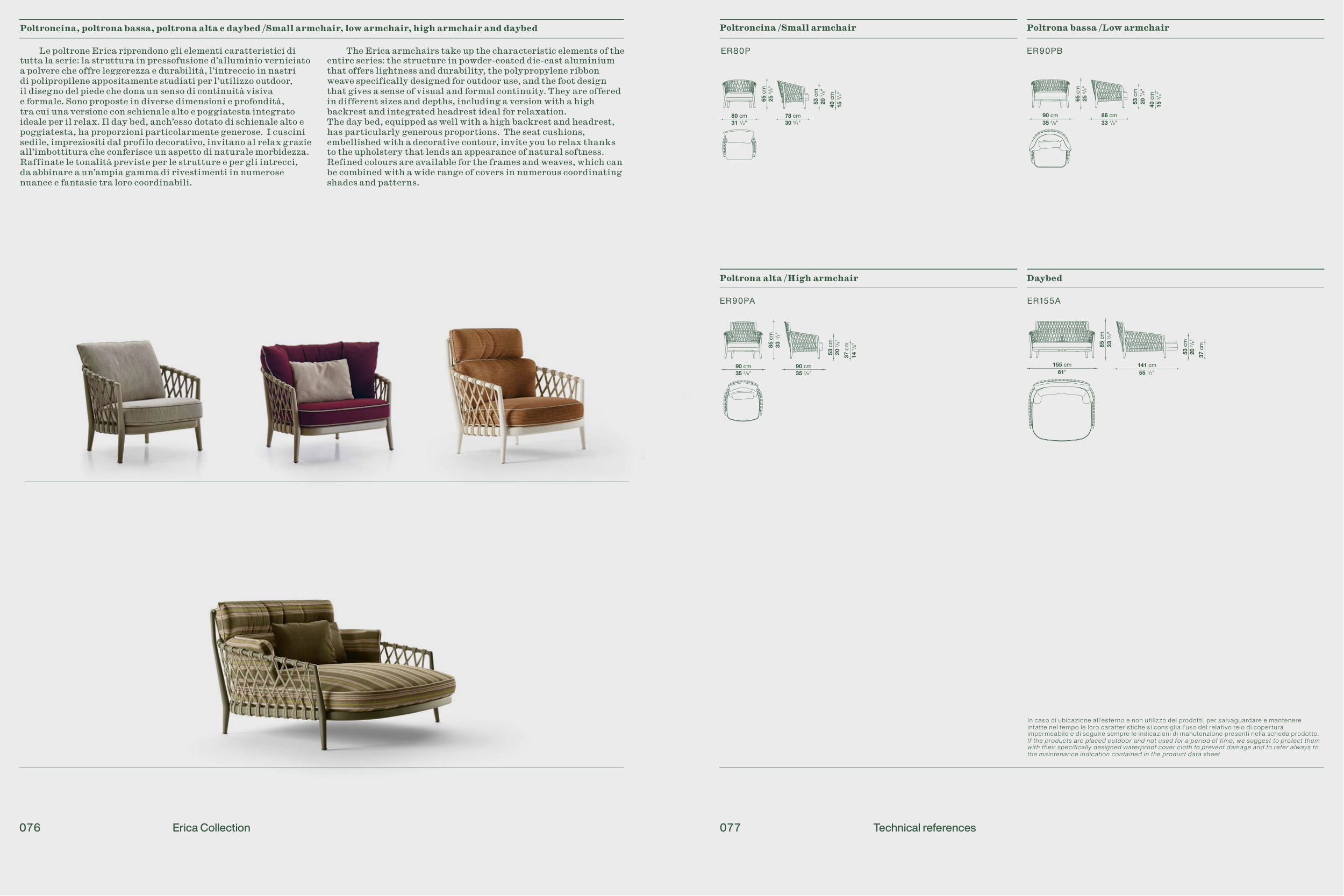 Poltroncina, poltrona bassa, poltrona alta e daybed /Small armchair, low armchair, high armchair and daybed