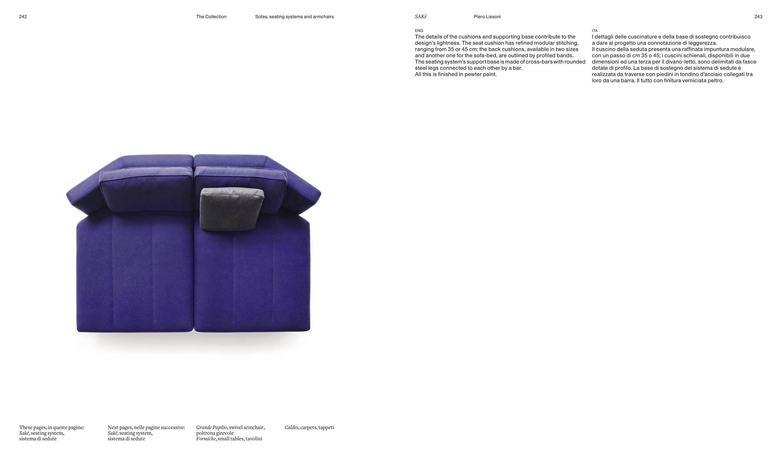 con un passo di cm 35 o 45; i cuscini schienali, disponibili in due