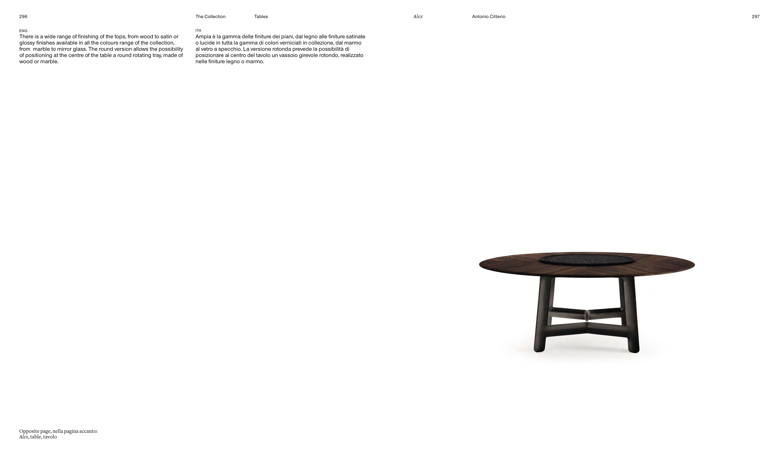 from marble to mirror glass. The round version allows the possibility