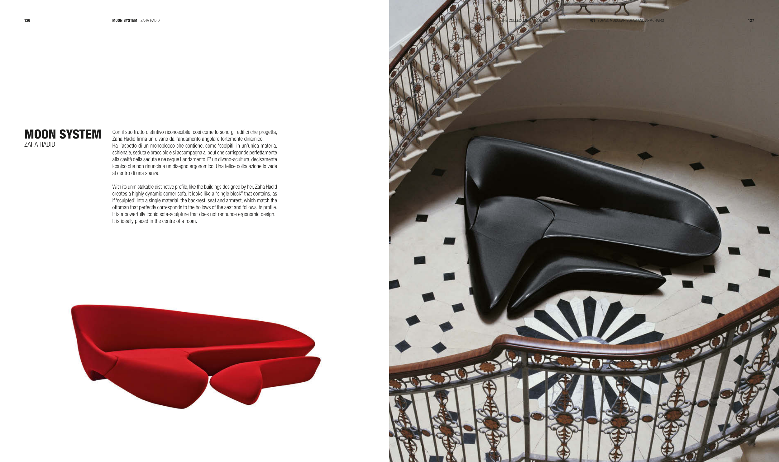 Zaha Hadid firma un divano dall’andamento angolare fortemente dinamico.