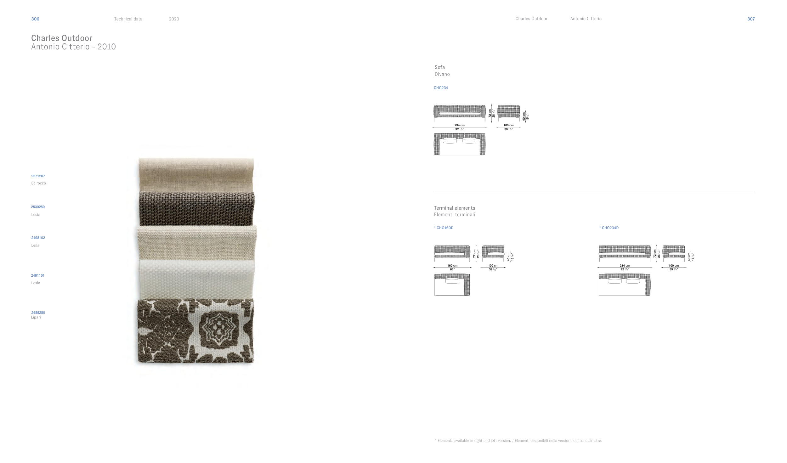* Elements available in right and left version. / Elementi disponibili nella versione destra e sinistra.