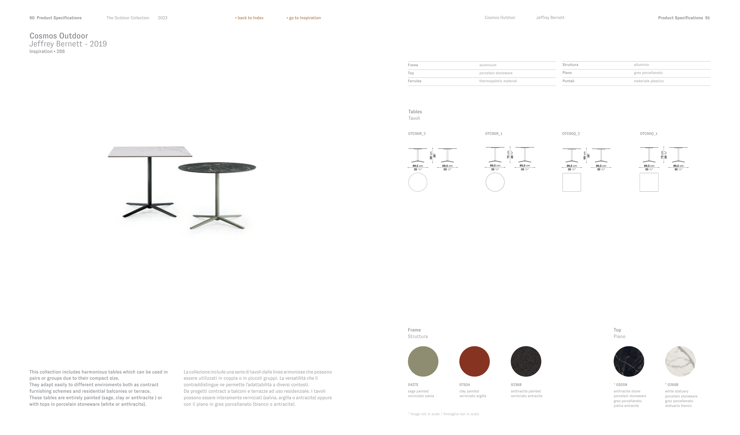 with tops in porcelain stoneware (white or anthracite).