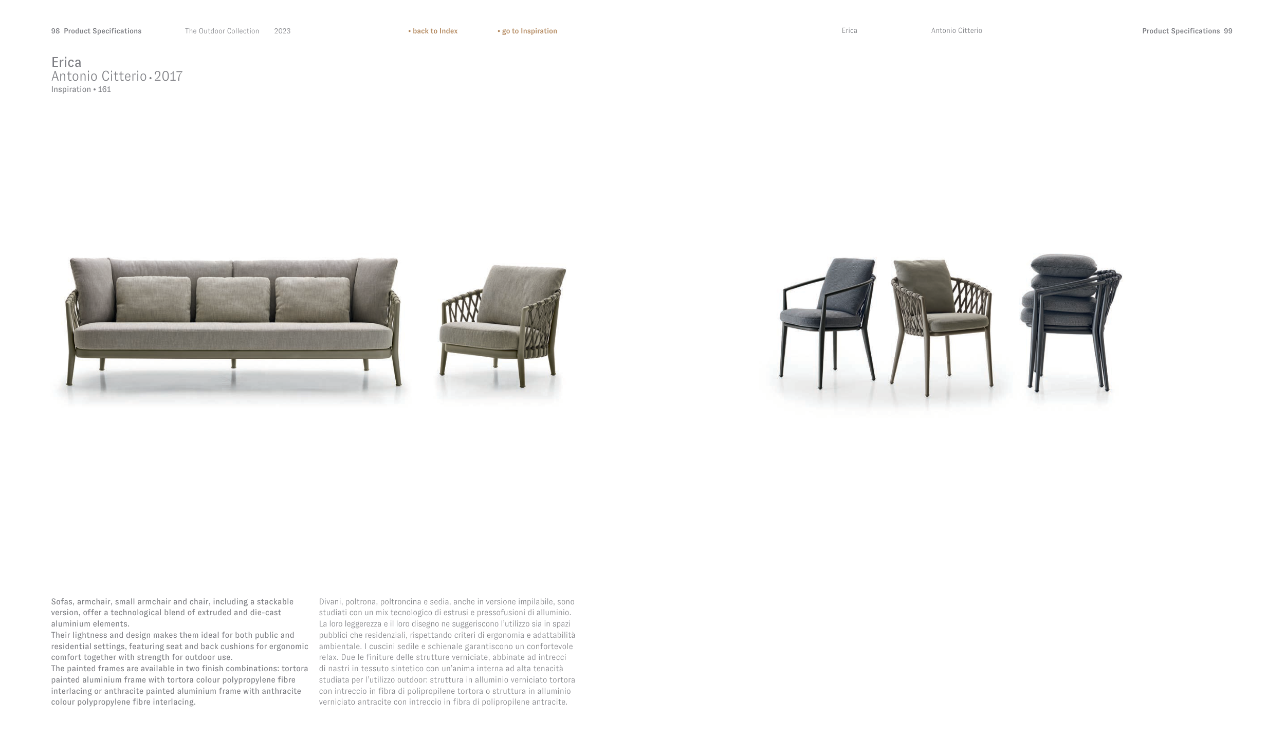 painted aluminium frame with tortora colour polypropylene fibre