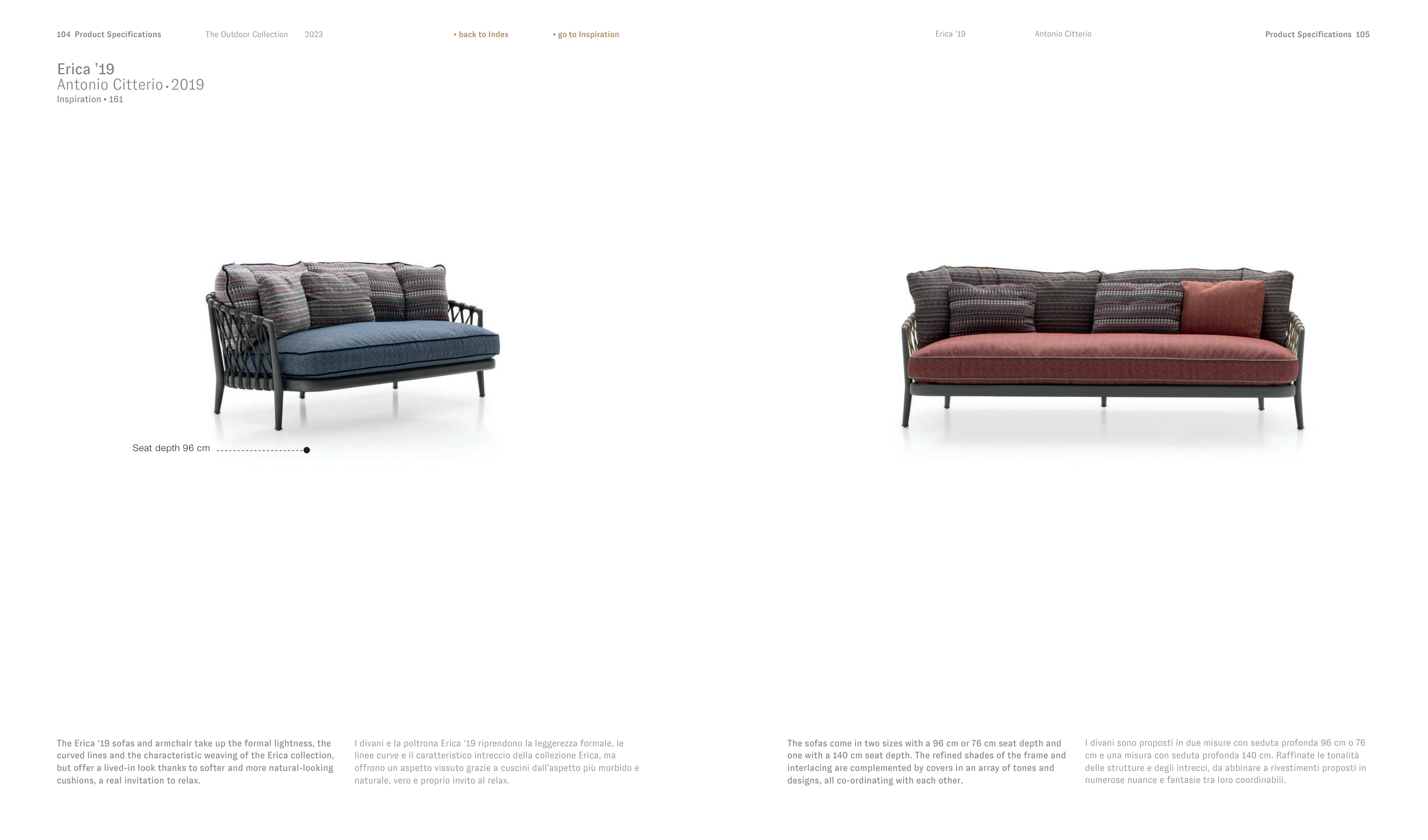 The sofas come in two sizes with a 96 cm or 76 cm seat depth and